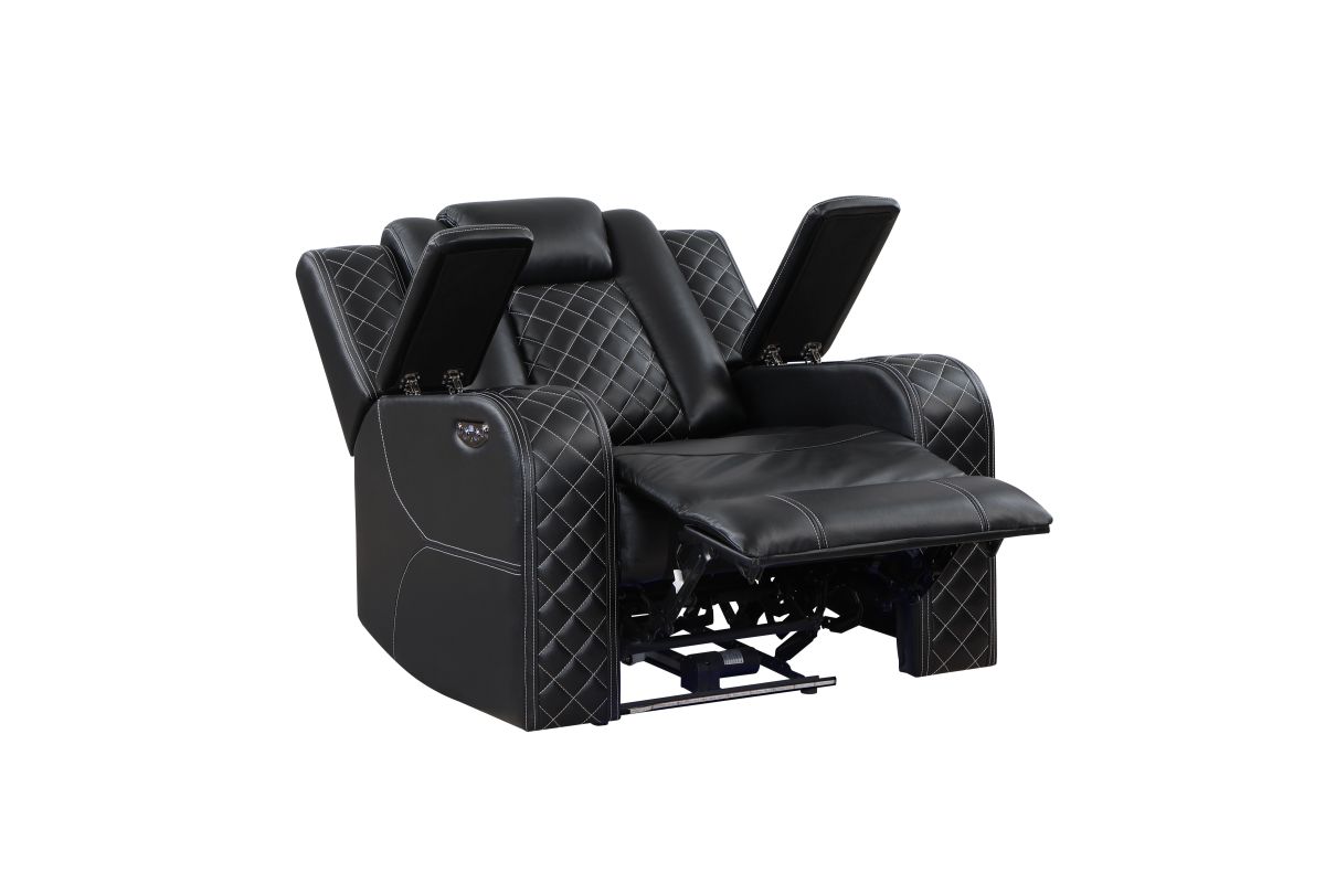 - Each Armrest with hidden storage, USB port on the side.