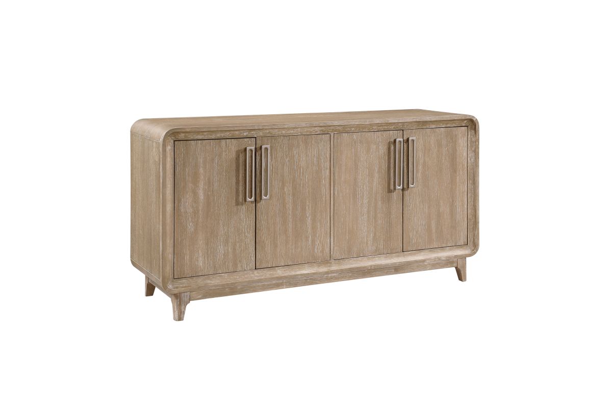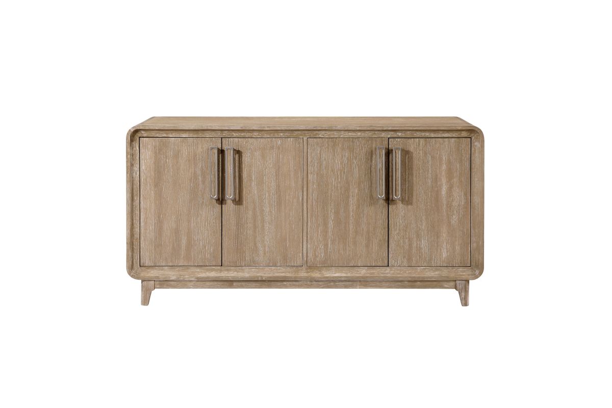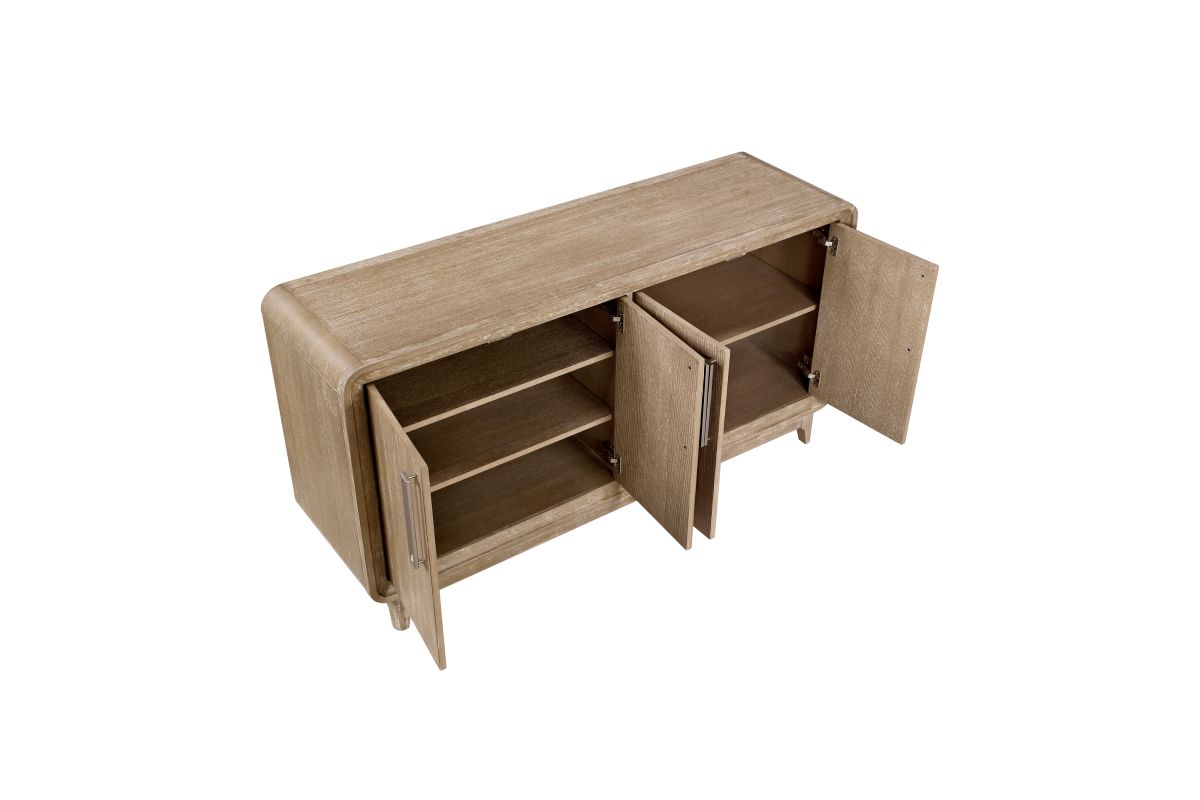 Elevate your home's organization and style with the buffet server. Crafted from a harmonious blend of oak veneer, solid wood, and engineered wood, and finished in a beautiful natural tone, this versatile server offers both aesthetic appeal and practical storage. Featuring two spacious storage cabinets, each equipped with adjustable shelves, it provides ample space to neatly tuck away dinnerware, linens, or media essentials. Its timeless design seamlessly integrates into various decor schemes, making it an ideal addition to your dining room, living room, or entryway for a touch of refined organization.