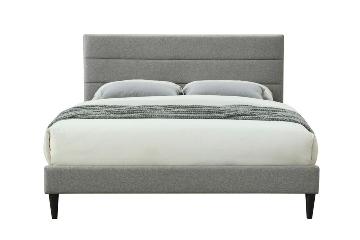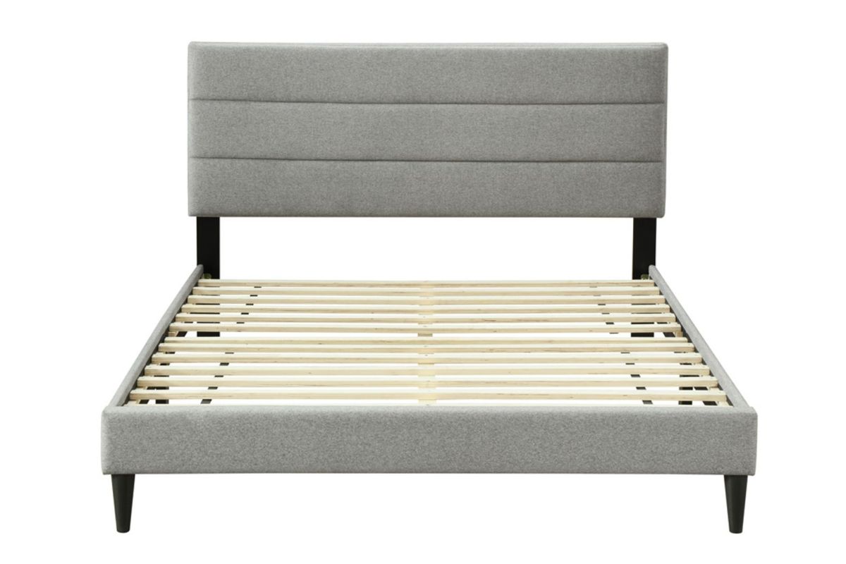 - Upholstered horizontal channel headboard in elegant gray fabric