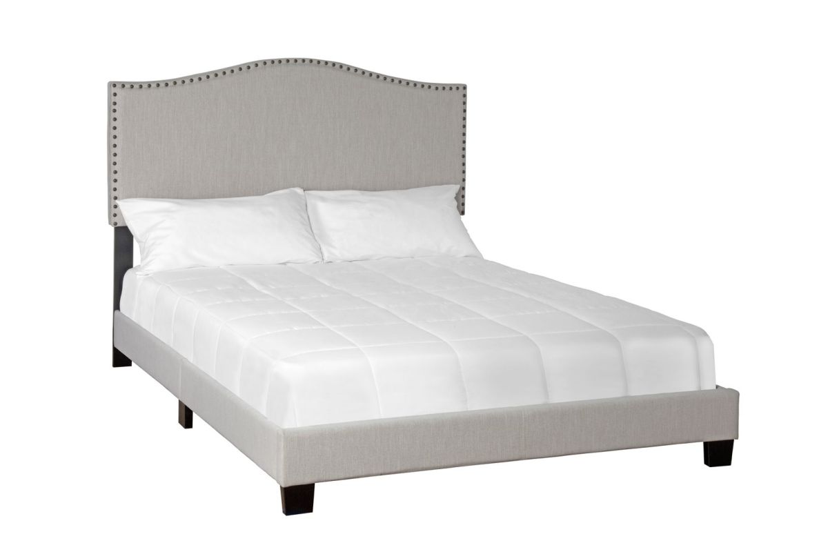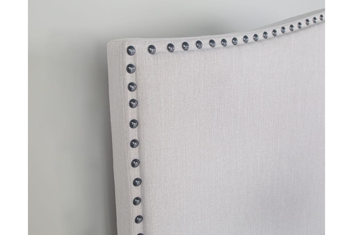 - Gracefully arched headboard with elegant nailhead trim