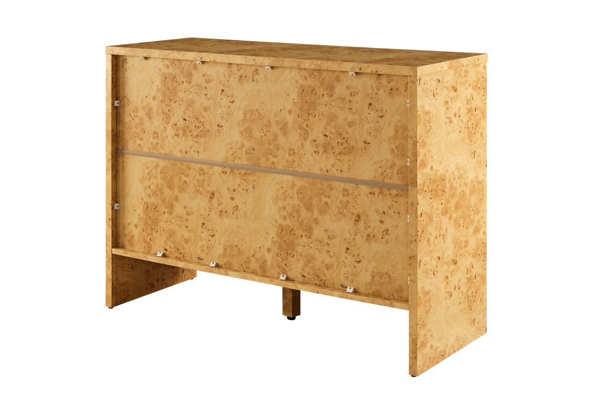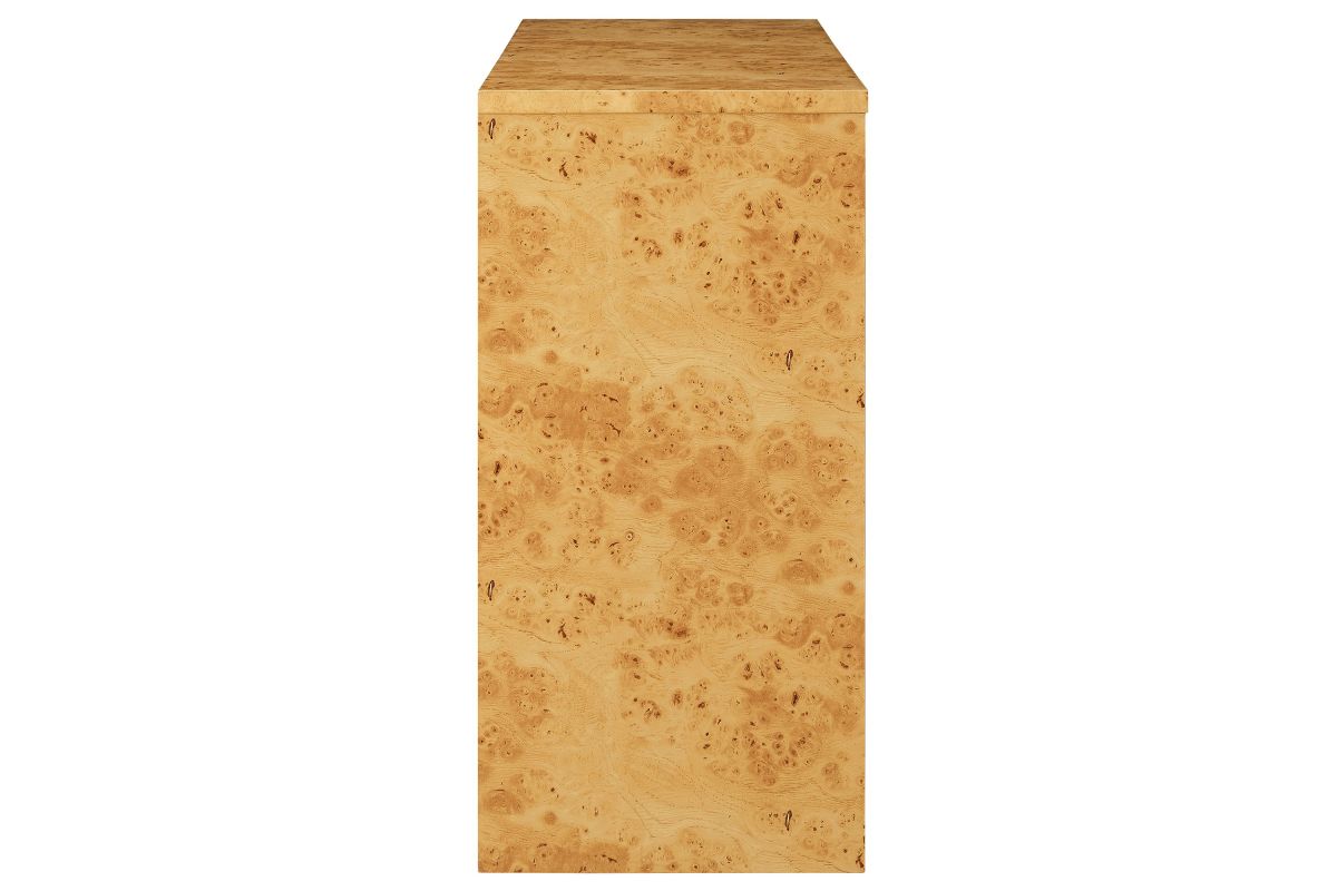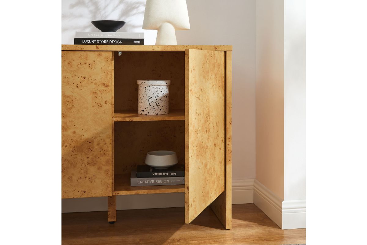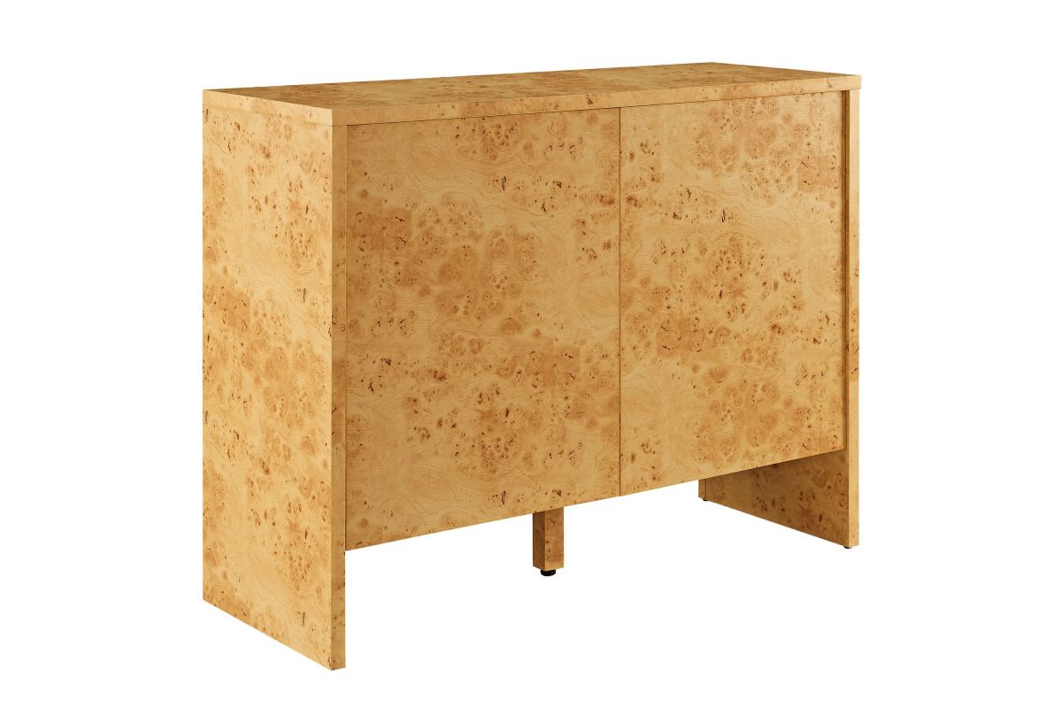 Discover the simplicity and allure of the Hudson 40 Inch Sideboard. Featuring a minimalist design, this modern storage cabinet blends seamlessly into any contemporary setting. Crafted and adorned with a burl wood paper laminate, this 40-inch cabinet exudes sophistication and durability. Featuring two soft-close doors, the spacious shelving area inside makes it a practical addition to any kitchen, dining area, or entryway. Designed with non-marking floor glides to protect your surfaces, the Hudson Sideboard with 2 Doors offers both style and enhanced functionality. Whether used as a kitchen sideboard, media cabinet, or an office credenza, the Hudson Burl Wood Buffet enhances any room with its contemporary elegance and sleek design. Assembly required.
