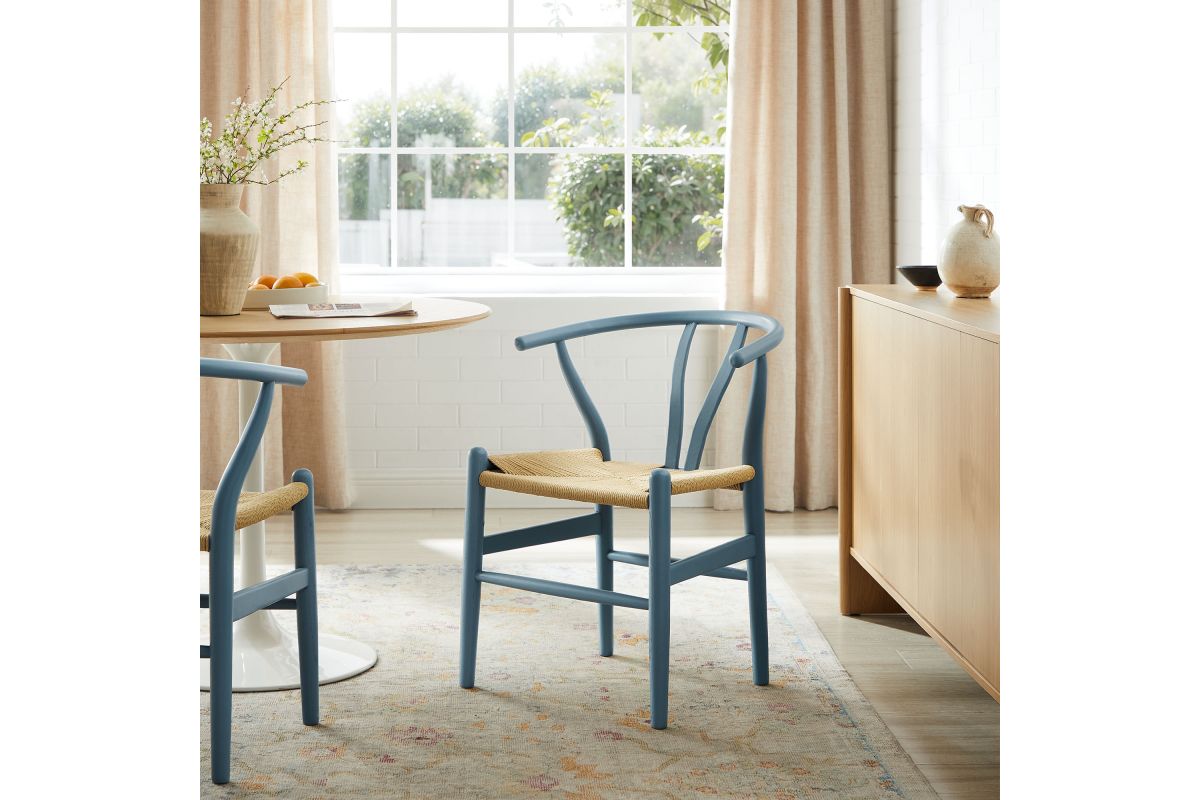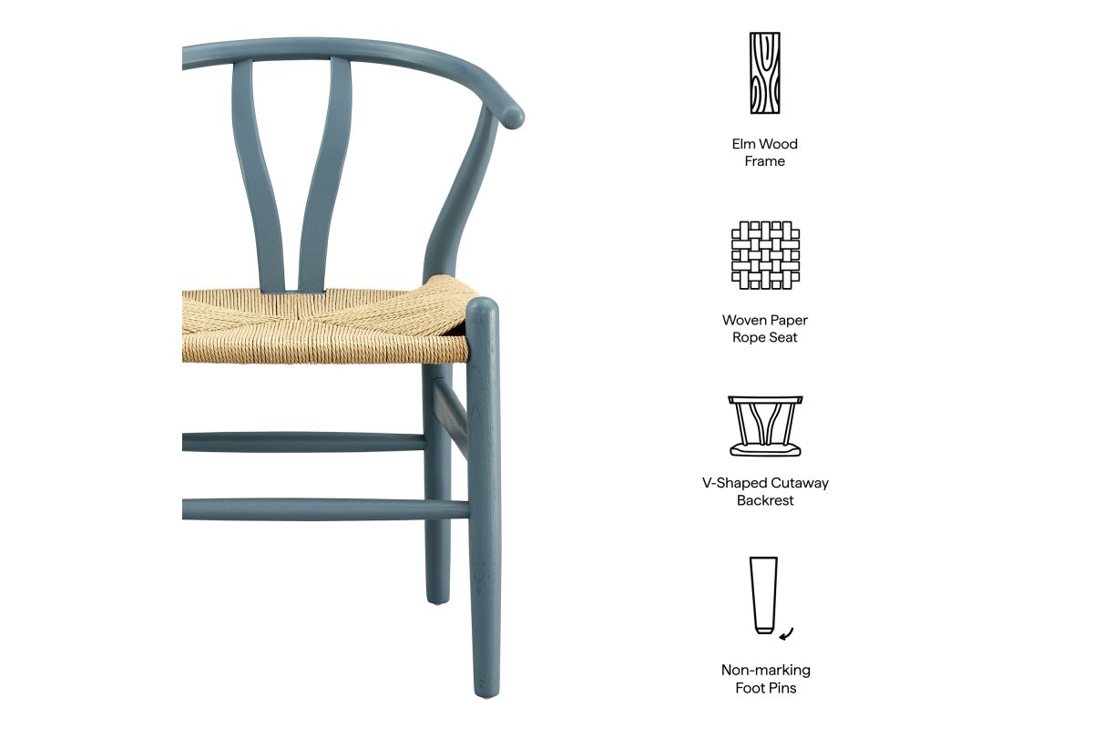 Rustic lines form the flowing frame of the Amish Wood Rope Dining Side Chair. Set with a mid-century style, this rope accent chair combines minimalist aesthetics with natural details, bringing beauty to your kitchen and dining areas. Featuring an elm wood frame with a curved half moon backrest that dips into a distinctive V-shaped cutaway, this side chair follows a classic retro chair design. Its woven paper rope seat complements the solid wood construction, making this armless dining chair perfect for your living room, lounge, bistro, café, or kitchen décor. Arriving fully assembled, the 29-inch tall Amish Side Chair features an ergonomic design with foot bar supports, offering both comfort and style for long-lasting enjoyment. Rope Chair Weight Capacity: 331 lbs.