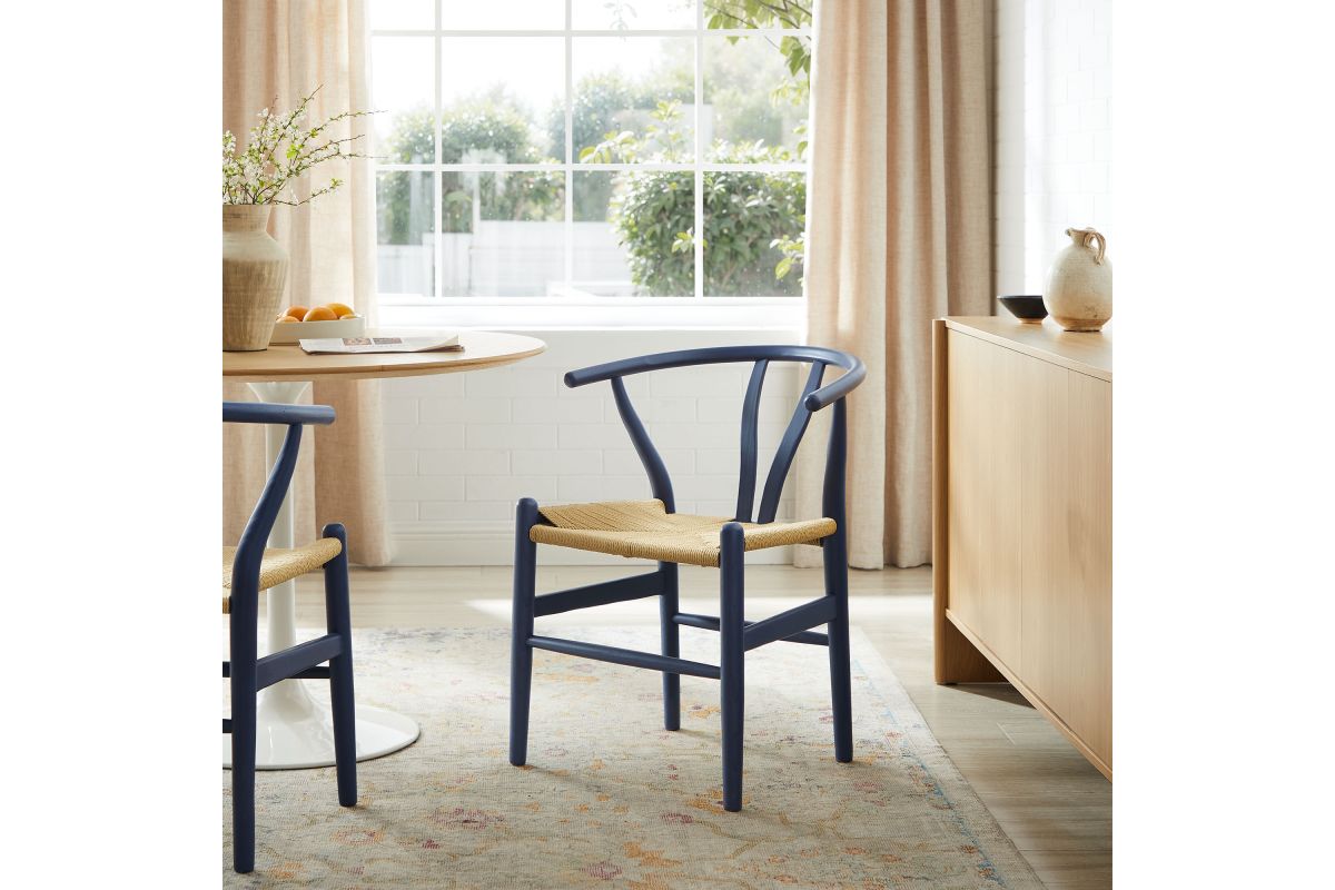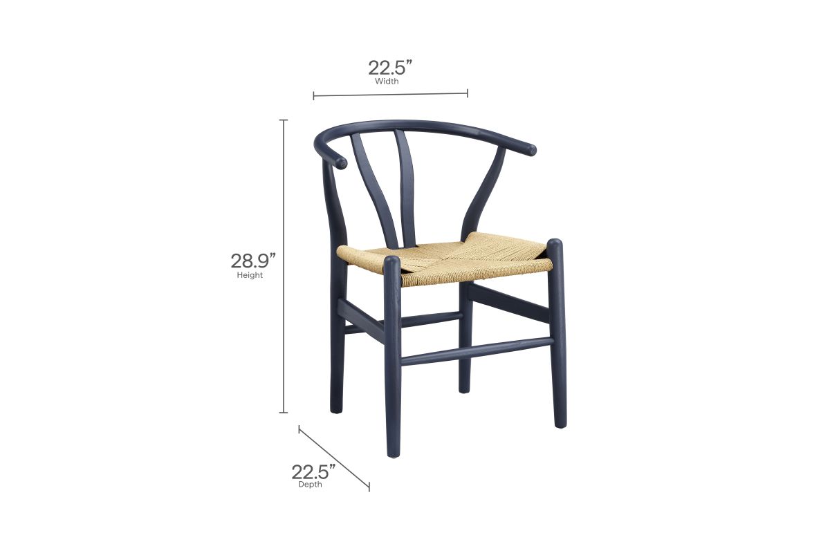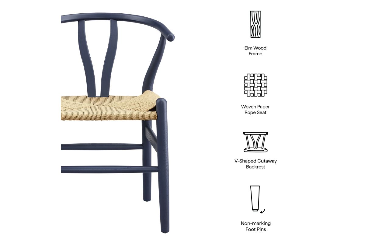 Rustic lines form the flowing frame of the Amish Wood Rope Dining Side Chair. Set with a mid-century style, this rope accent chair combines minimalist aesthetics with natural details, bringing beauty to your kitchen and dining areas. Featuring an elm wood frame with a curved half moon backrest that dips into a distinctive V-shaped cutaway, this side chair follows a classic retro chair design. Its woven paper rope seat complements the solid wood construction, making this armless dining chair perfect for your living room, lounge, bistro, café, or kitchen décor. Arriving fully assembled, the 29-inch tall Amish Side Chair features an ergonomic design with foot bar supports, offering both comfort and style for long-lasting enjoyment. Rope Chair Weight Capacity: 331 lbs.