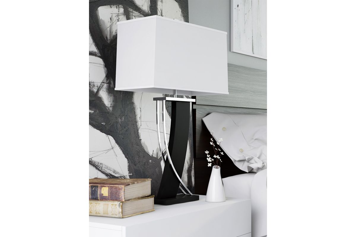 The LS-21788 Estella Table Lamp combines a dark walnut base with polished steel accents and an off-white fabric shade, offering soft, diffused lighting. At 31 inches tall, it provides a sturdy and elegant presence for bedside tables, living rooms, or offices, complementing both contemporary and traditional interiors.
