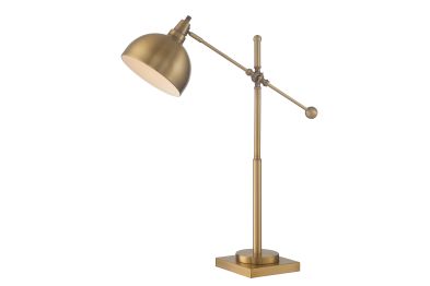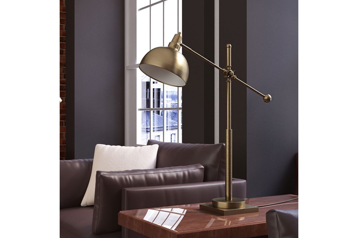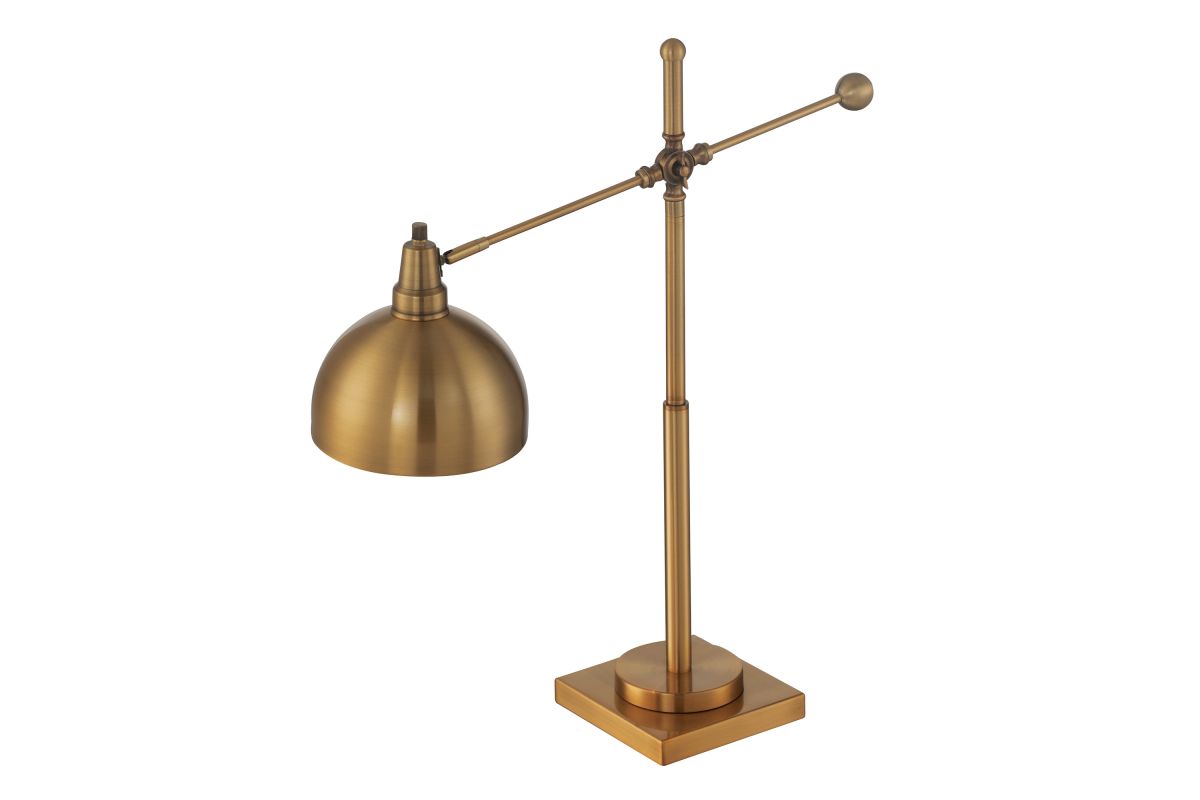 The Lite Source LS-22604 Cupola Table Lamp features a sleek brushed brass finish and a modern design, making it a stylish addition to various interior styles. Standing at 30 inches tall, it includes a 23W CFL bulb and offers a rotary on/off switch for convenience. Its adjustable arm allows for directed lighting, making it ideal for task lighting in offices, reading nooks, or bedside tables. The matte gold tone adds a touch of elegance, enhancing the ambiance of any room.