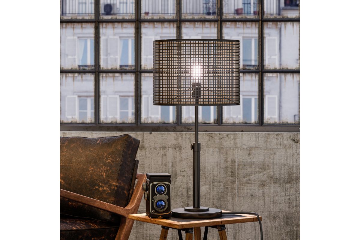 Make a statement with this modern industrial table lamp, featuring a striking black metal grid shade that adds texture and dimension to any space. The exposed bulb offers a raw, urban vibe, while the sleek cylindrical base keeps the look grounded and balanced. Perfect for loft-style interiors, offices, or modern bedrooms, this lamp delivers ambient lighting with a bold design punch that complements minimalist and industrial décor.