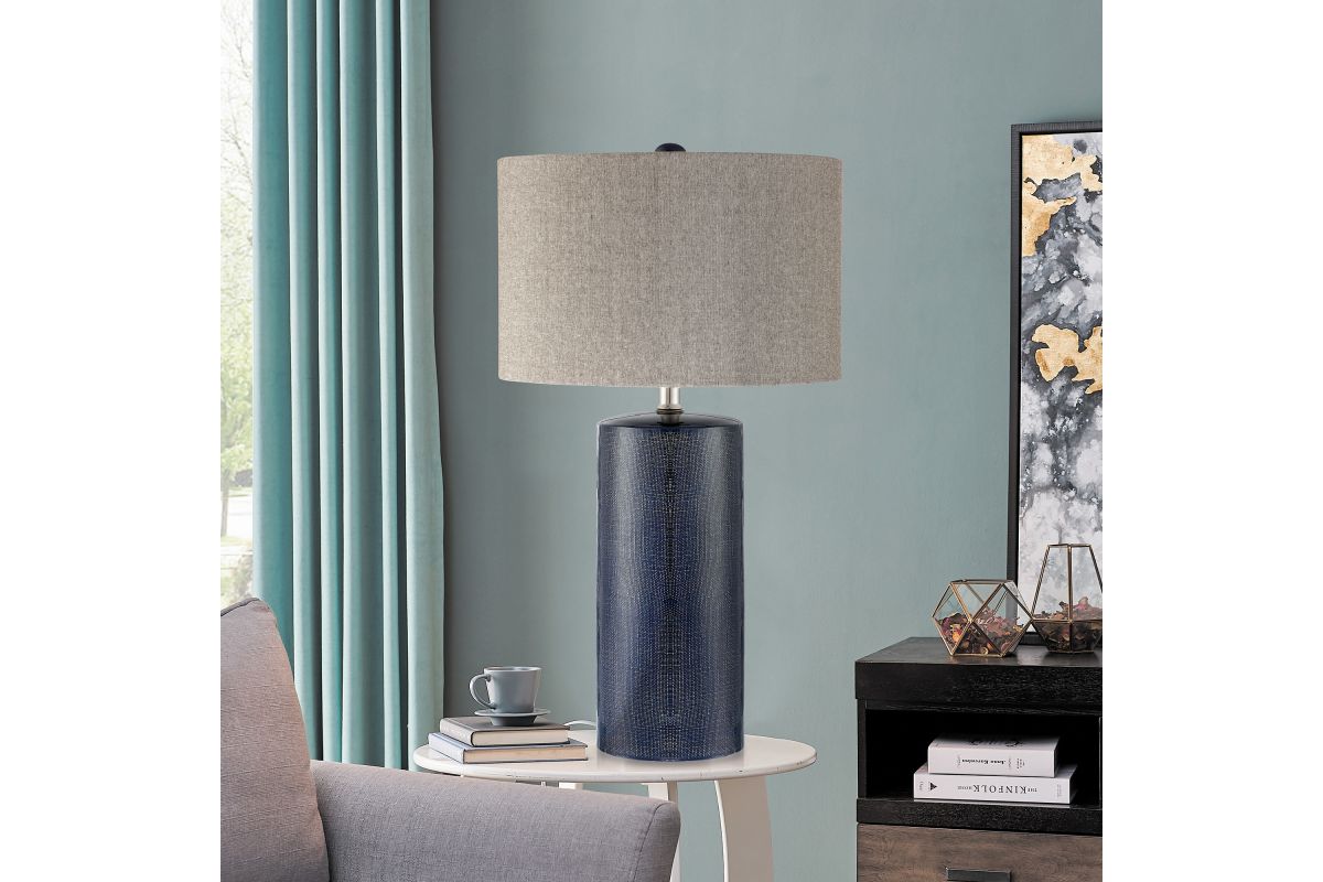 Add a touch of sophistication to any room with this modern ceramic table lamp. Featuring a deep navy-blue glazed base with subtle texture and a soft gray fabric drum shade, this lamp effortlessly blends classic elegance with a contemporary edge. Ideal for living rooms, bedrooms, or home offices, it delivers warm, ambient lighting and timeless style that complements both modern and transitional décor.