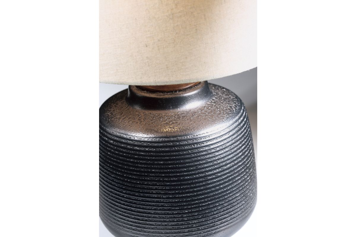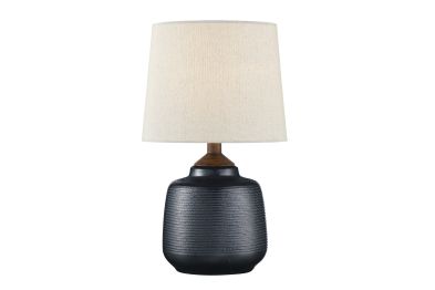 The Lite Source LS-23345BRZ Lismore Table Lamp features a painted bronze ceramic base with a retro pinstripe texture, paired with a white linen drum shade. Standing at 17 inches tall and 10 inches wide, it accommodates a 60W E27 bulb (not included), providing ample illumination for various spaces. Its compact size and neutral tones make it ideal for bedside tables, desks, or accent areas, adding both functionality and style to any interior.
