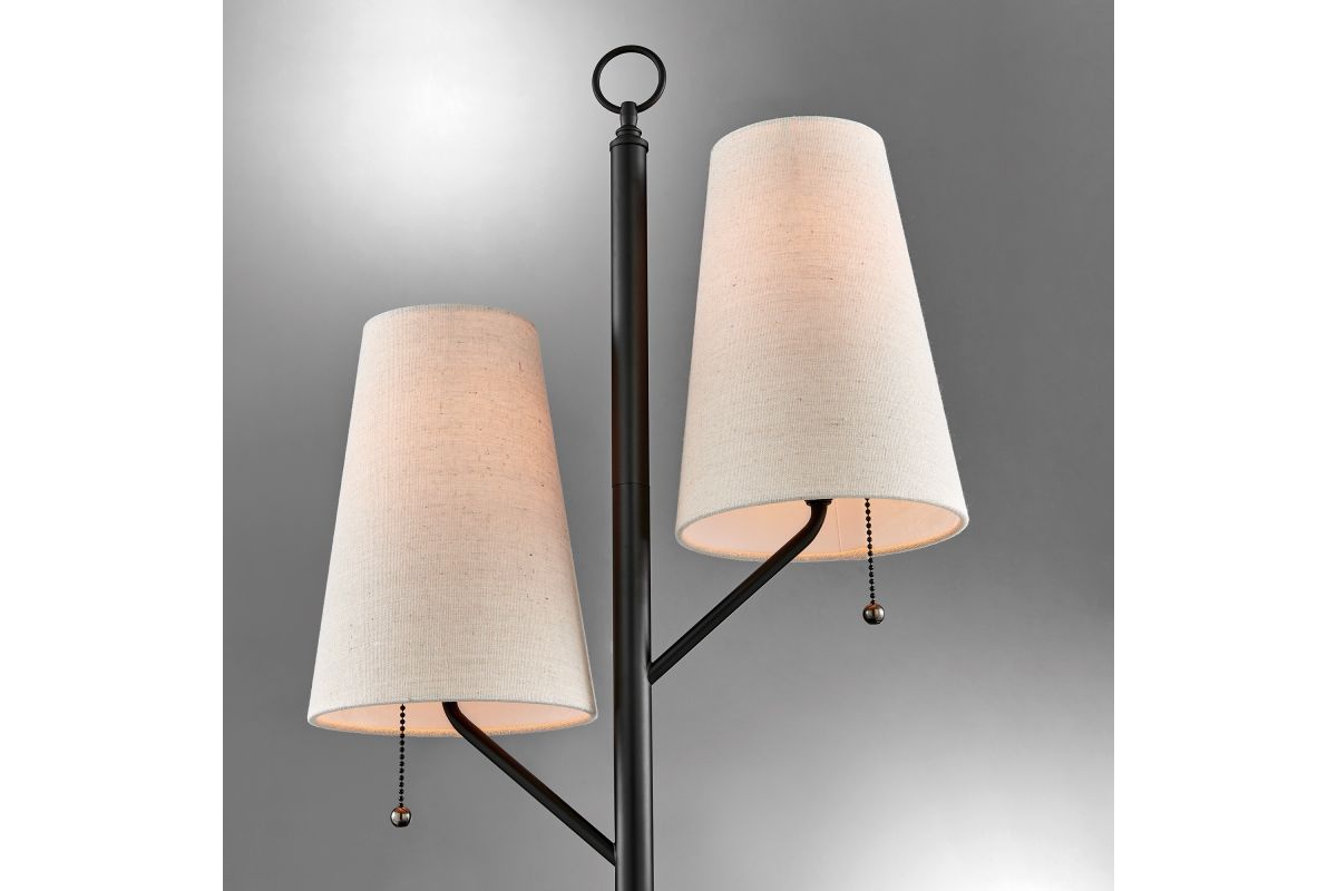 Introducing the stunning transitional style 2-light table lamp, a masterful blend of classic and contemporary design. The lamp is expertly crafted with a rich dark bronze finish in metal, adding a touch of sophistication to any room. The shades are perfectly balanced on each side, creating a harmonious and elegant look. The slim linen tapper shades diffuse light beautifully, lending a warm and inviting feel to your space. The dual pull-chain switches allow for effortless light control. This lamp is perfect for adding a touch of refinement to your living room, bedroom, or study, a true testament to your impeccable taste.
