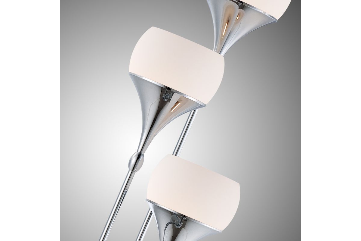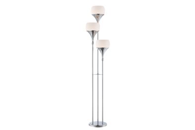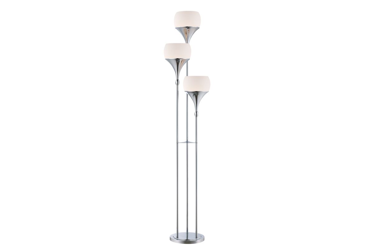 The Lite Source LS-82225 Celestel Floor Lamp showcases a modern silhouette in polished chrome, featuring three upward-facing frosted glass shades that dispense ambient light beautifully. Standing 65 inches tall with a slender 10" depth and 12" width, it accommodates three E27 (medium base) bulbs up to 60 W each (not included), delivering widespread illumination ideal for living rooms, bedrooms, or entryways. The slim, elegant frame and clean design provide a sleek, contemporary presence that complements both minimalist and transitional interiors while meeting UL safety standards.