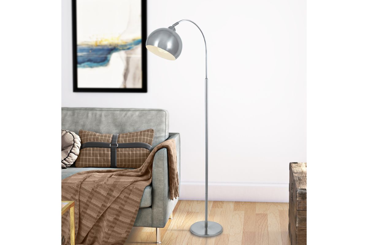 The Lite Source Palesa Floor Lamp stands approximately 65.5 inches tall with a streamlined 10-inch width and 20.5-inch depth, showcasing a sleek polished steel finish over a sturdy metal construction. It fits one E27 (medium base) bulb up to 100 W (not included), and operates via a convenient push-button switch on the cord. At roughly 14 pounds, it combines effortless functionality with refined contemporary appeal, offering gentle ambient lighting that's ideal for living rooms, bedrooms, or reading corners. Its design and craftsmanship are ETL-listed, ensuring it meets safety standards.