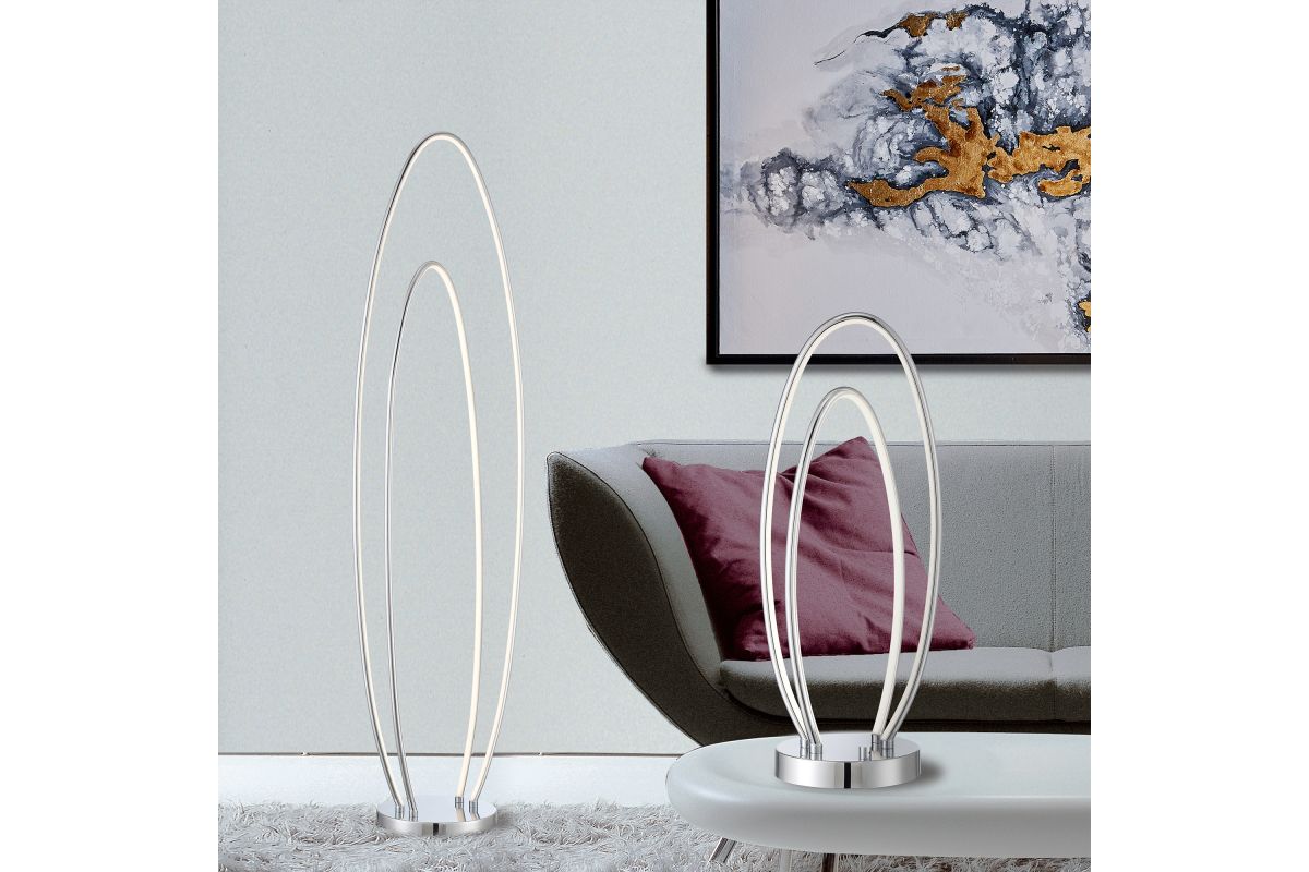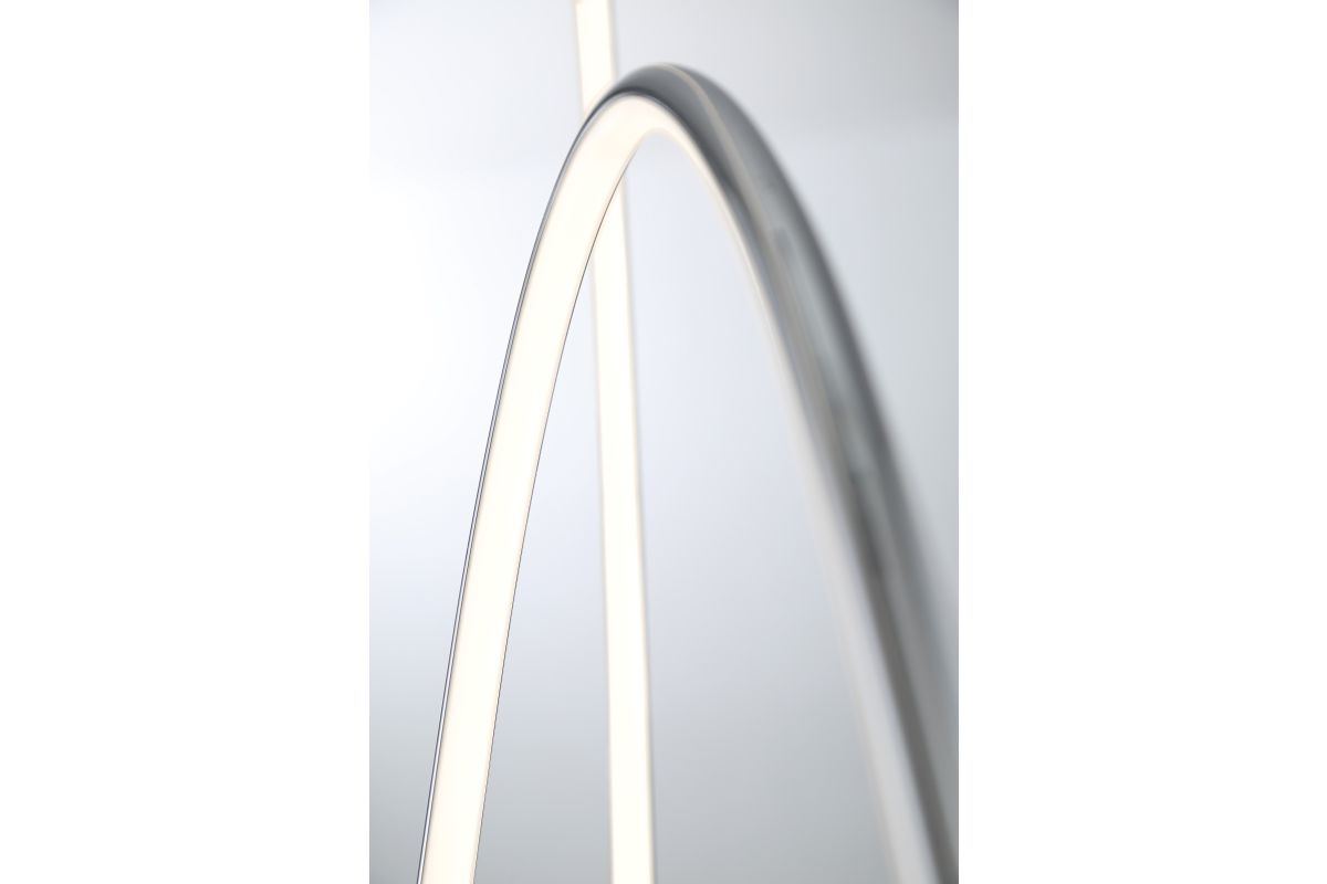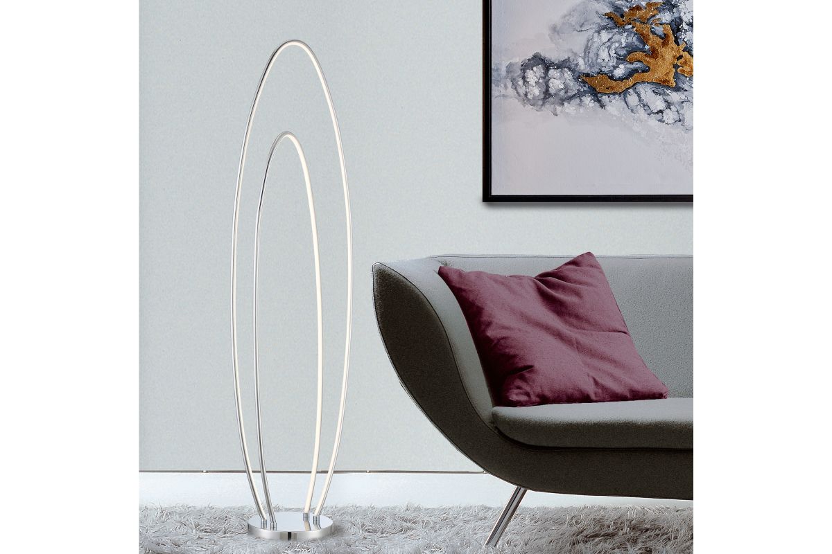 Bright up your space with this 5,000 lumen output LED floor lamp! The streamlined look of this contemporary floor lamp is versatile and designed to fit well with modern decor. Its orbital, double-ring frame in a luxurious polished chrome finish will draw the eye and provide an all-encompassing glow of light to any living room and bedroom. A flexible Silicon Rubber diffuser covers the LED light to diffuse and evenly disperse the ambient glow. A round heavy metal base in polished chrome finish features a foot-dimmer switch allows full control of illumination.