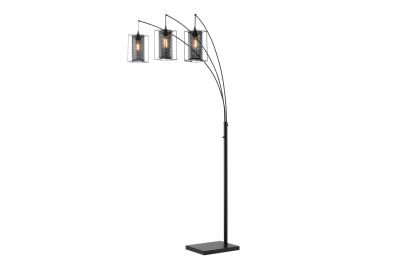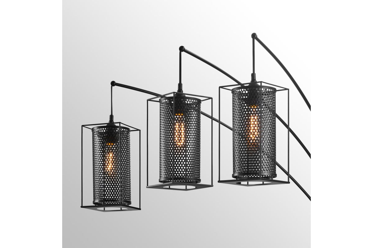 Introducing the elegant matt black finish 3-light arch floor lamp, a striking addition to any modern living space. Crafted with a keen eye for detail, this lamp boasts an industrial design featuring three Edison style vintage bulbs and cage mesh lamp shade. The all-metal construction adds durability and longevity to the piece. Perfect for sectionals and sofas, this lamp provides a warm and inviting atmosphere, elevating the overall aesthetic of your home. This lamp is a perfect balance of style and functionality, embodying a timeless charm that is sure to impress.