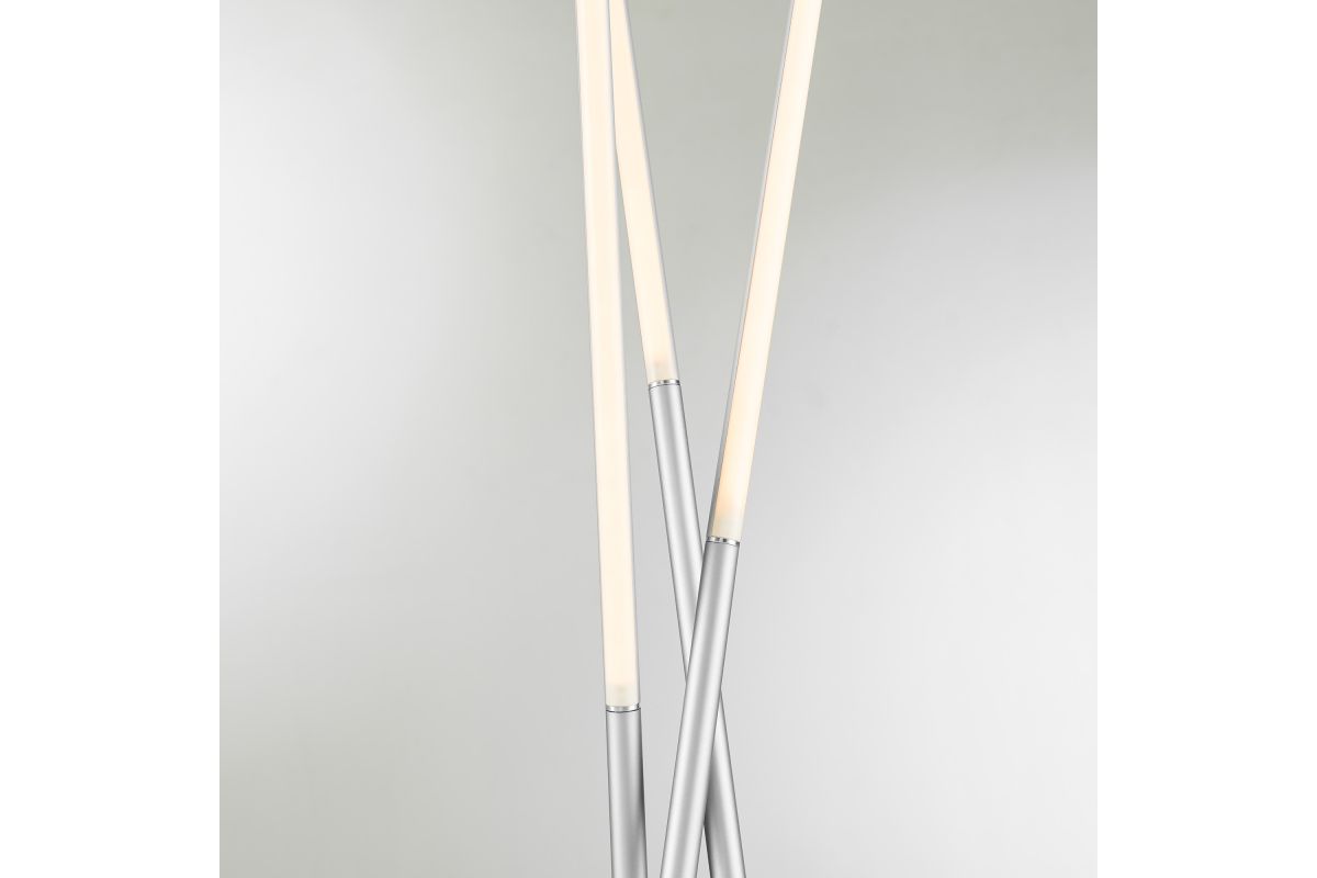 With a minimalist design and architectural charm, this ultra-modern LED tree floor lamp accomplishes a tribute to simple style. This floor focuses on a slender silhouette in a trio design with three long crossed stick-style pieces. The super-bright LED lights provide ample illumination, while the cool-looking design makes a bold statement. This energy-efficient floor lamp operates from a 4-way dimming foot switch.
