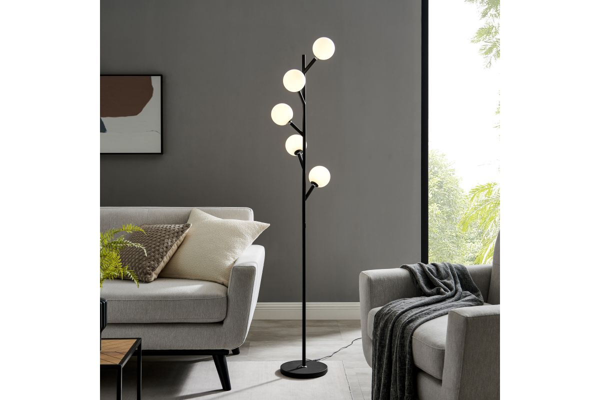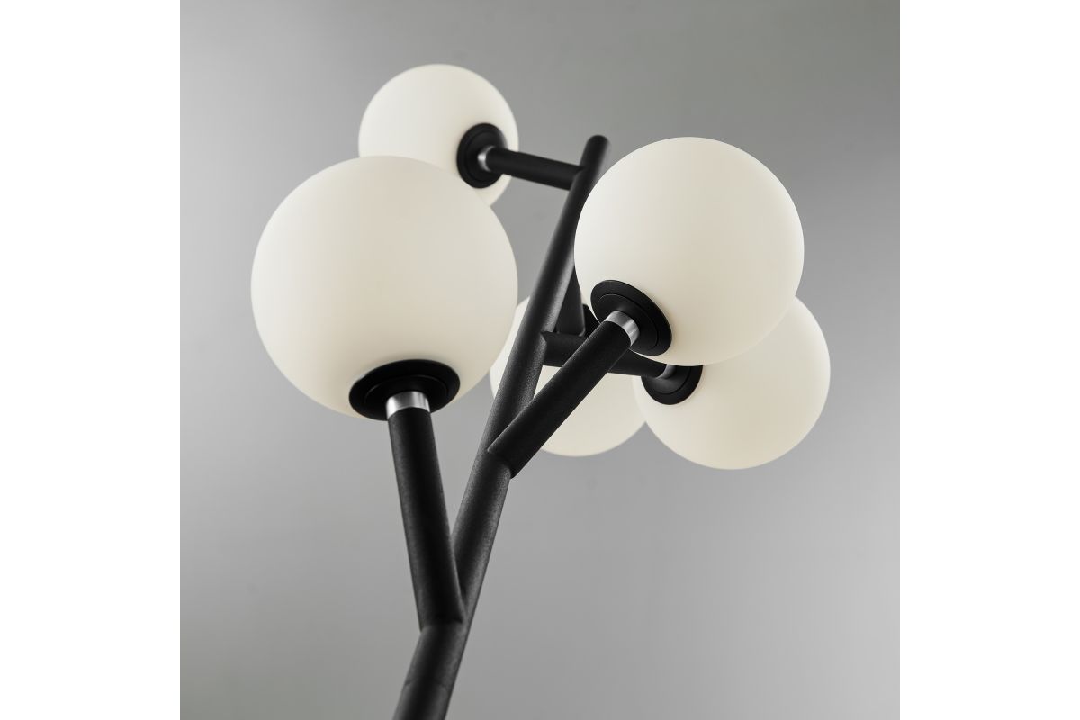 Subtlety works wonders to embellish a modern space, and this LED tree floor lamp accomplishes a tribute to simple style. This floor focuses on a slender silhouette in a tree design with five LED frosted glass orb glows brightly. The super-bright LED lights provide ample illumination, while the cool-looking design makes a bold statement. The lamp offers pole-based one touch 4-way dimming switch.