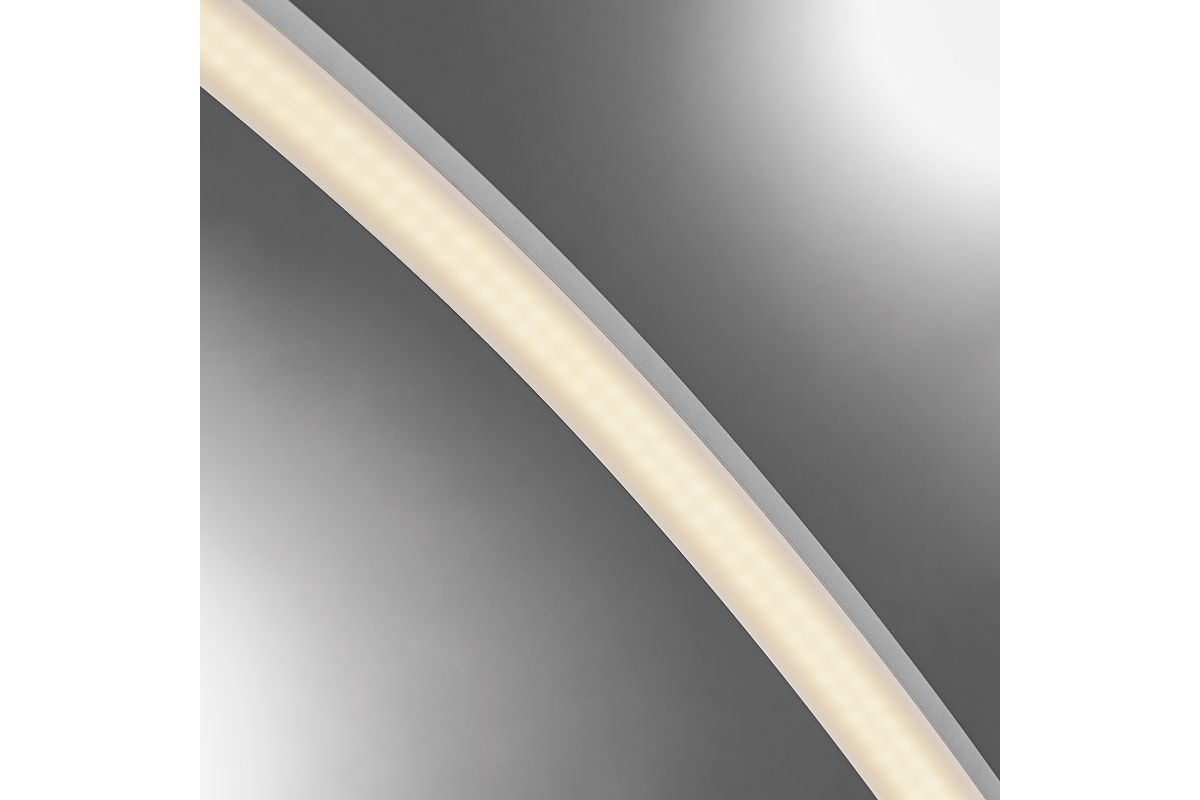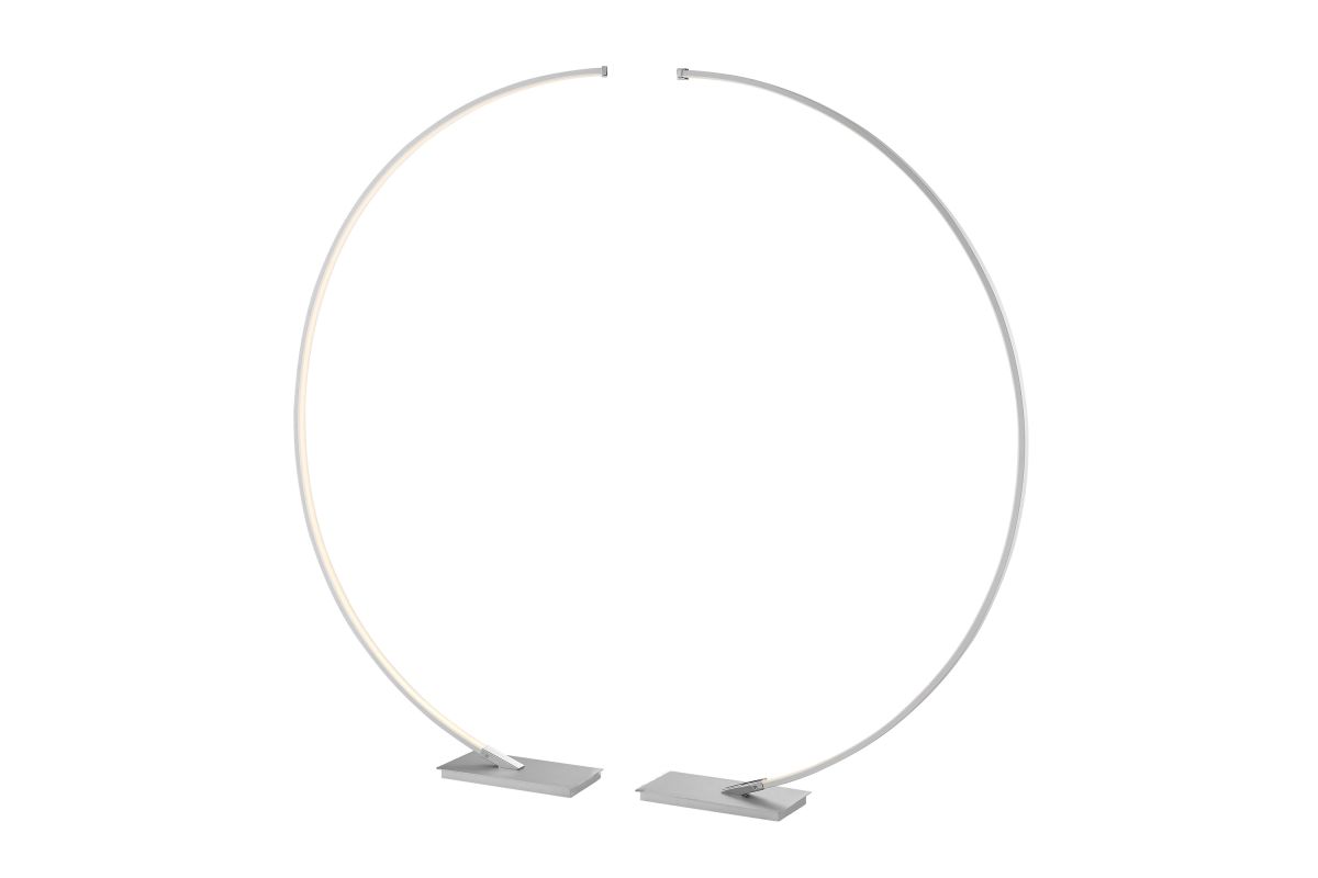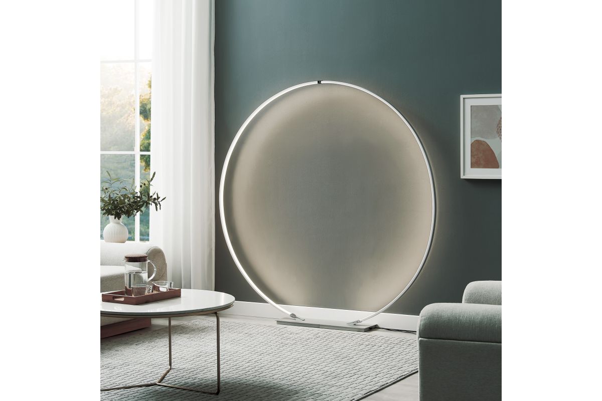 Experience the awe-inspiring beauty of minimalist design with our oversized, brilliantly luminous circular LED floor lamp—a true centerpiece for any space. Crafted from durable metal with a sleek metallic finish, this lamp is crowned by an aluminum and acrylic diffuser. However, its standout feature lies in its gracefully curved and delicately slim silhouette. Perfect for positioning behind a sofa, along a foyer wall, or even in the master bedroom, it exudes an ultra-modern vibe. This circular marvel can transform into two separate arch floor lamps by removing the cover on the base, allowing you to adorn both sides of seating areas or your favorite armchair. Enjoy customizable lighting with a convenient foot switch offering 4-way dimming control. Illuminate your space with contemporary elegance and versatility.