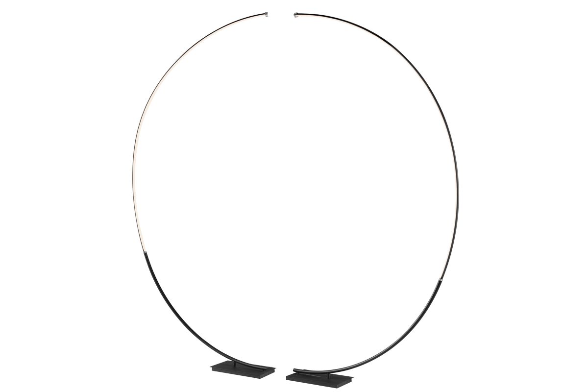 Experience the awe-inspiring beauty of minimalist design with our oversized, brilliantly luminous circular LED floor lamp—a true centerpiece for any space. Crafted from durable metal with a sleek metallic finish, this lamp is crowned by an aluminum and acrylic diffuser. However, its standout feature lies in its gracefully curved and delicately slim silhouette.  Perfect for positioning behind a sofa, along a foyer wall, or even in the master bedroom, it exudes an ultra-modern vibe. This circular marvel can transform into two separate arch floor lamps by removing the cover on the base, allowing you to adorn both sides of seating areas or your favorite armchair. Enjoy customizable lighting with a convenient foot switch offering 4-way dimming control. Illuminate your space with contemporary elegance and versatility.