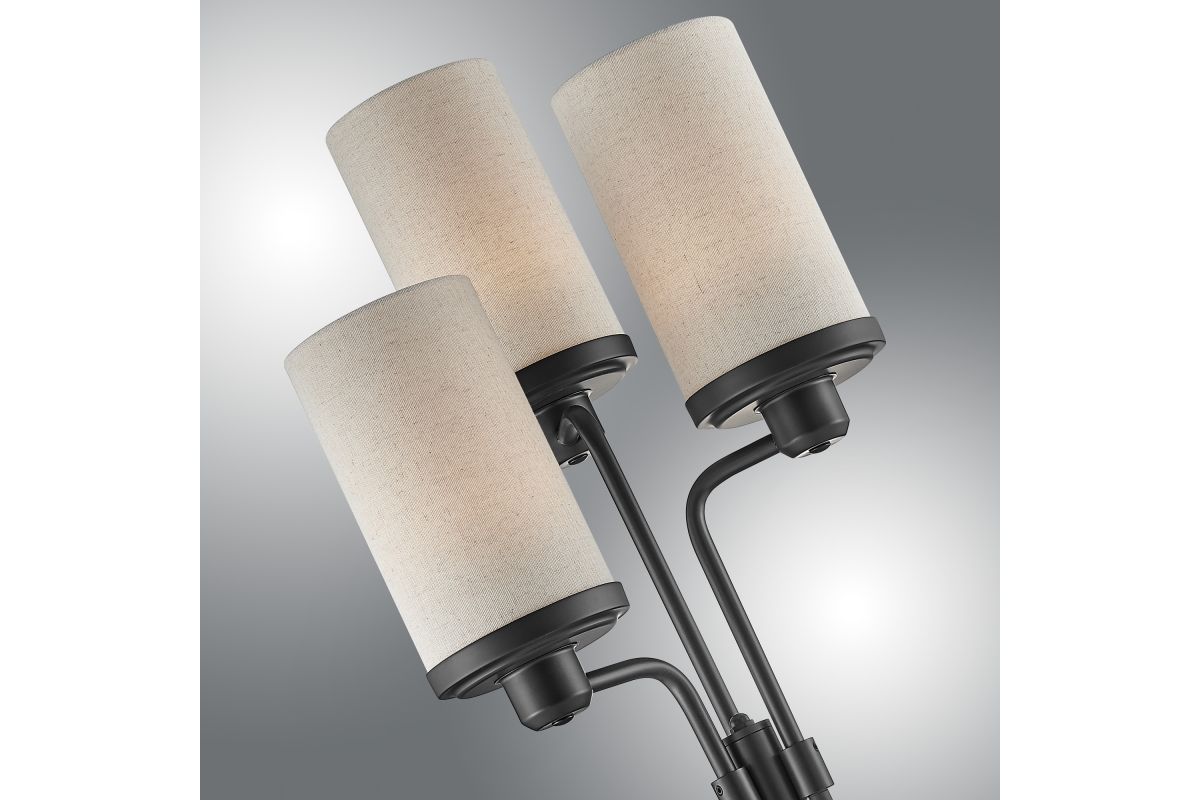 Discover our enchanting 3-light floor lamp, boasting a rustic faux wood and rich dark bronze finish crafted entirely from metal. This lamp is the perfect lighting solution for modern farmhouse, western, or lodge-style room decor. Topped with three oatmeal linen fabric drum shades, it emits a gentle and inviting glow, casting a warm ambiance throughout your space. With its versatile 3-level switch, you can illuminate the one light, two lights, or all three lights simultaneously, offering you flexibility and control over your lighting needs.