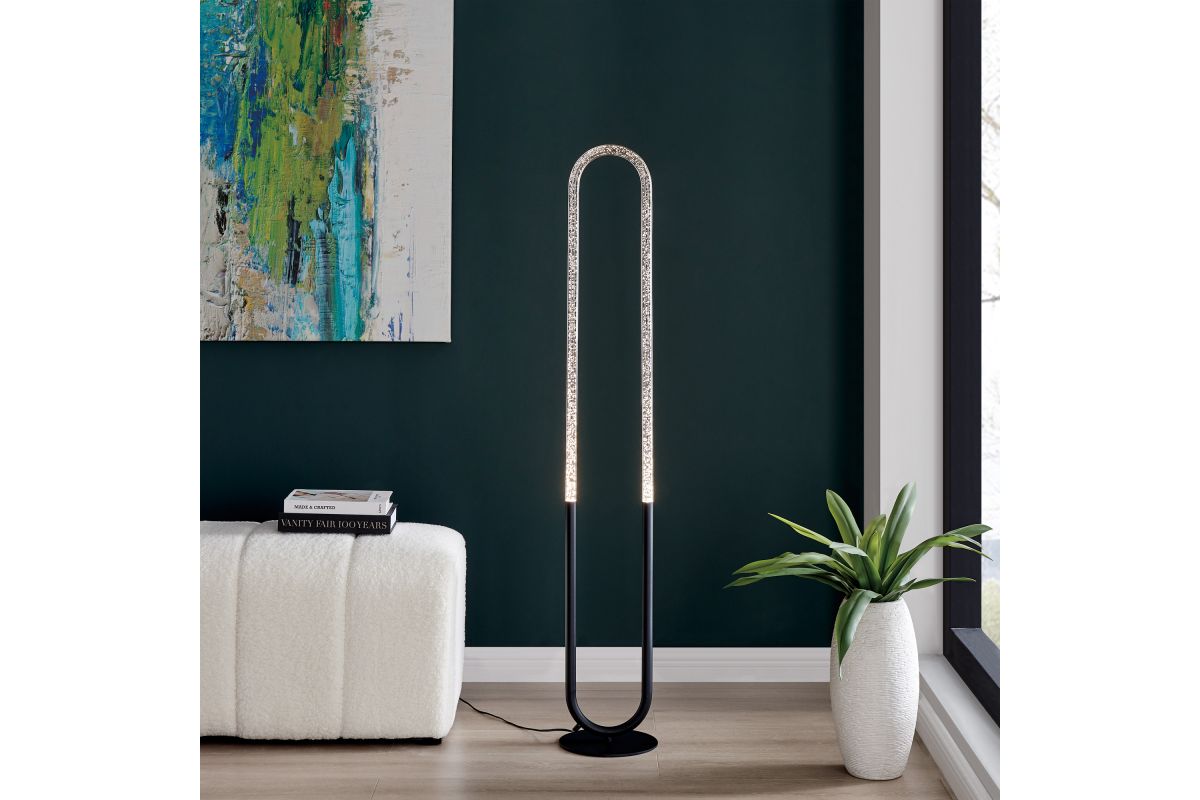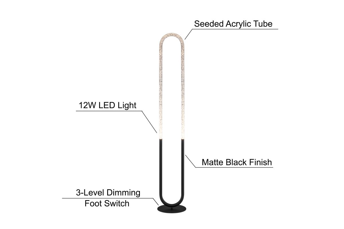 Elevate your space with the fusion of fine art and ambient lighting embodied in this exquisite modern LED floor lamp. Meticulously designed to infuse a dynamic essence into contemporary environments, this energy-efficient lamp captivates with its sparkling silhouette. Crafted with meticulous precision, it showcases a sleek blackfinish adorning a robust metal frame, encapsulating a mesmerizing 12-watt crystal acrylic tube that casts a captivating bubble effect. The remarkable shape and luminous display enhance your surroundings with a touch of sparkle. For added convenience, it comes equipped with a 3-level dimming foot switch, granting you the flexibility to adjust the lighting levels to suit your unique preferences and needs.