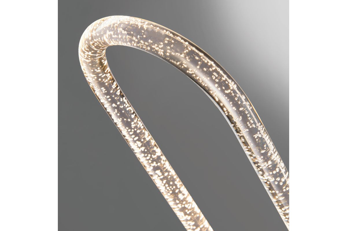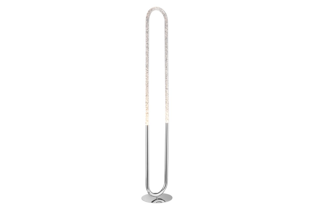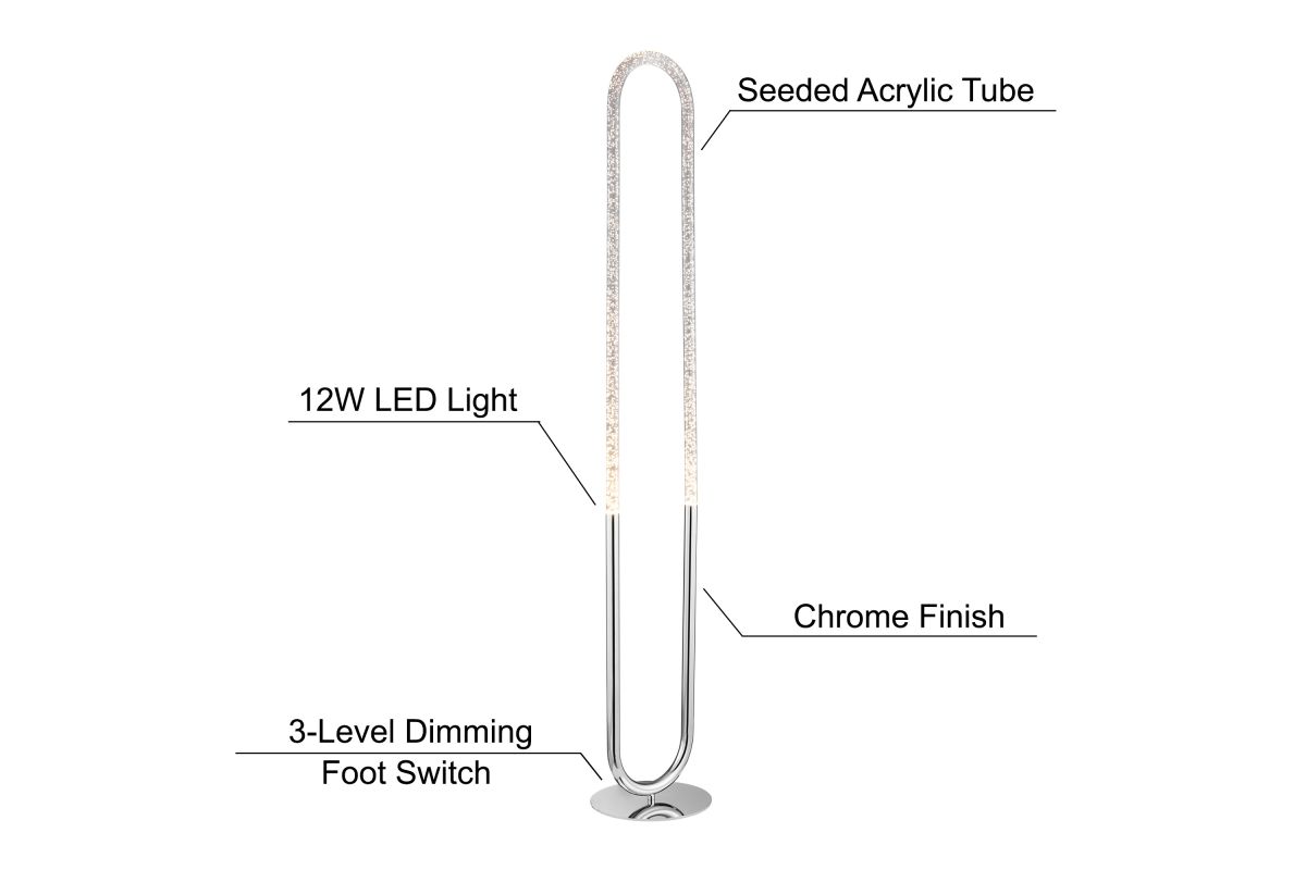 Elevate your space with the fusion of fine art and ambient lighting embodied in this exquisite modern LED floor lamp. Meticulously designed to infuse a dynamic essence into contemporary environments, this energy-efficient lamp captivates with its sparkling silhouette. Crafted with meticulous precision, it showcases a sleek polished chrome finish adorning a robust metal frame, encapsulating a mesmerizing 12-watt crystal acrylic tube that casts a captivating bubble effect. The remarkable shape and luminous display enhance your surroundings with a touch of sparkle. For added convenience, it comes equipped with a 3-level dimming foot switch, granting you the flexibility to adjust the lighting levels to suit your unique preferences and needs.