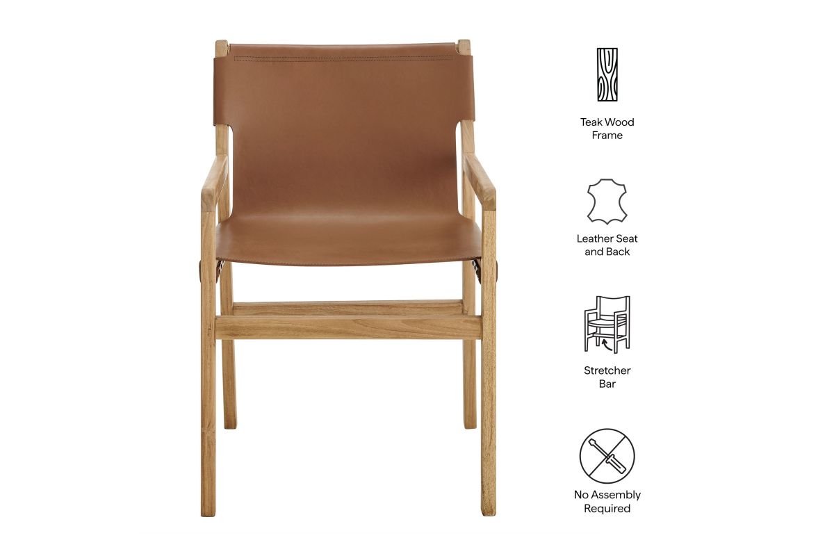 Bring timeless ease to your interior with the Sonora Teak Wood Leather Dining Chair. Designed with a refined silhouette and classic profile, this leather dining chair features a solid teak frame that highlights the wood�s natural grain while offering long-lasting support. The smooth leather seat and backrest provide structured comfort, making it a smart choice for meals, meetings, or casual seating throughout the home. Whether placed in a dining space, study, or hallway, this modern leather chair delivers a sculptural presence with warm materials and clean lines. Arrives Fully Assembled.