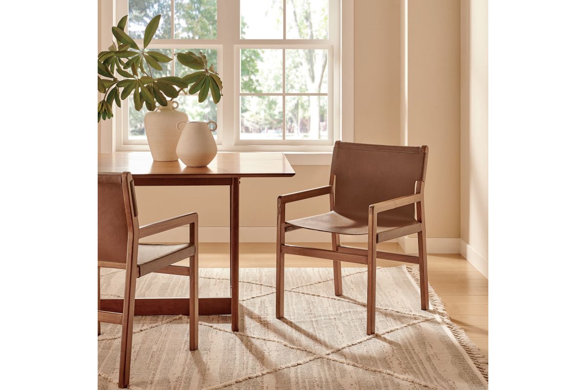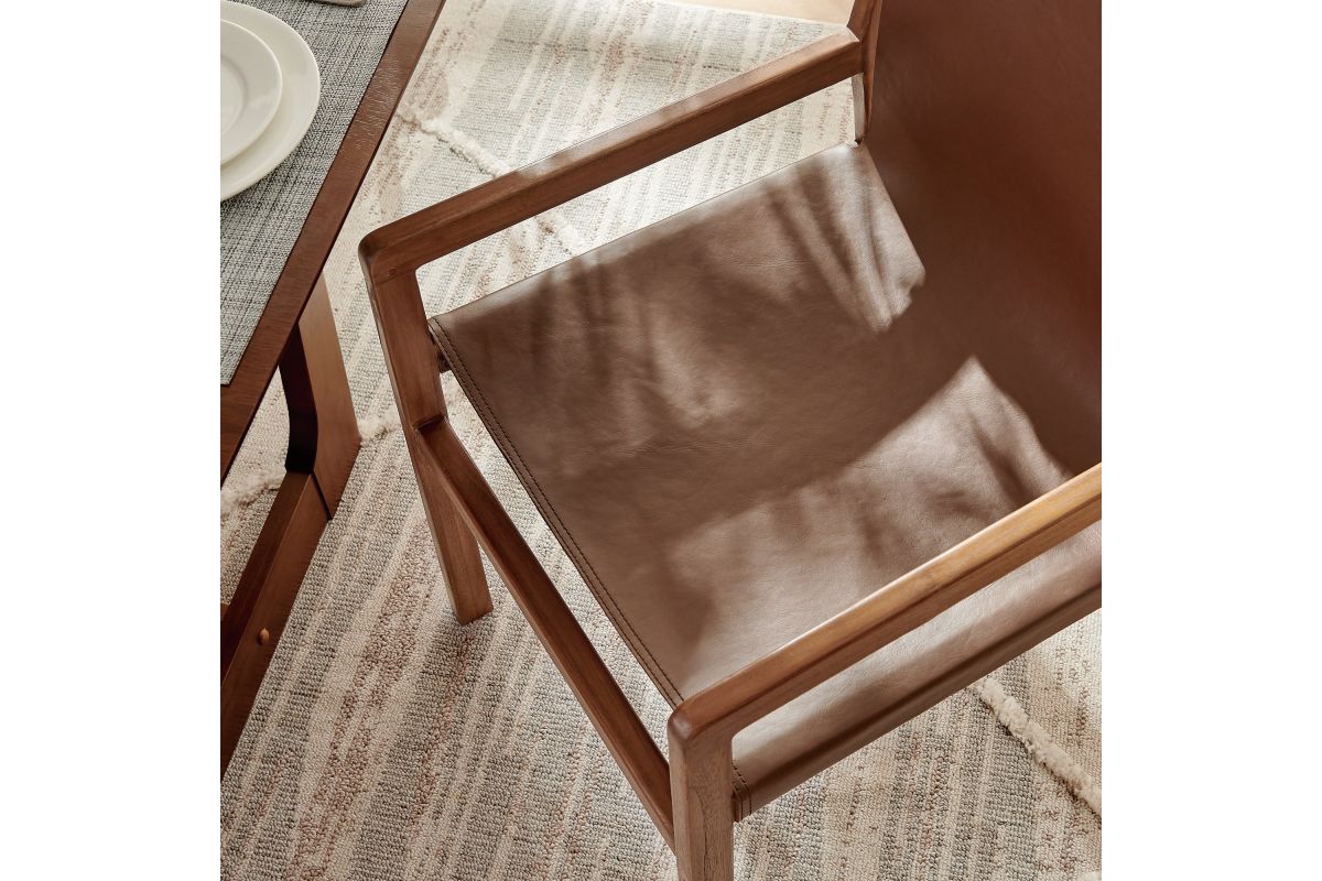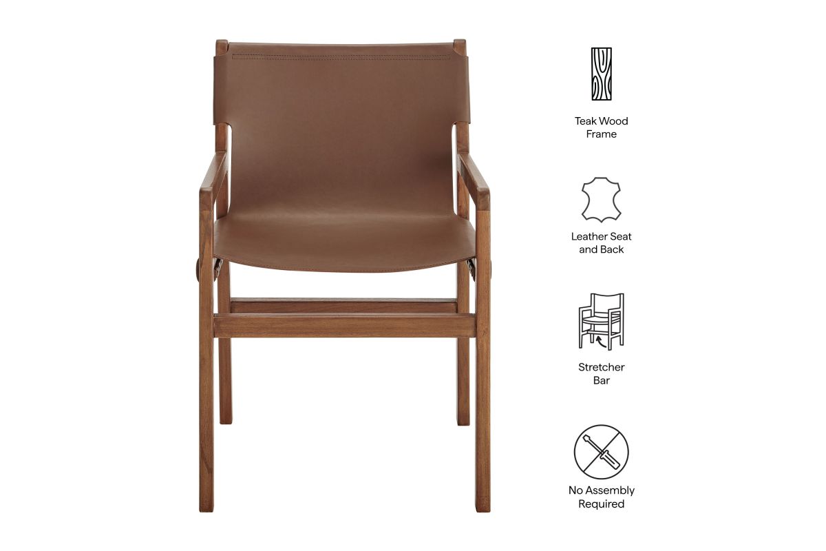 Bring timeless ease to your interior with the Sonora Teak Wood Leather Dining Chair. Designed with a refined silhouette and classic profile, this leather dining chair features a solid teak frame that highlights the wood’s natural grain while offering long-lasting support. The smooth leather seat and backrest provide structured comfort, making it a smart choice for meals, meetings, or casual seating throughout the home. Whether placed in a dining space, study, or hallway, this modern leather chair delivers a sculptural presence with warm materials and clean lines. Arrives Fully Assembled.