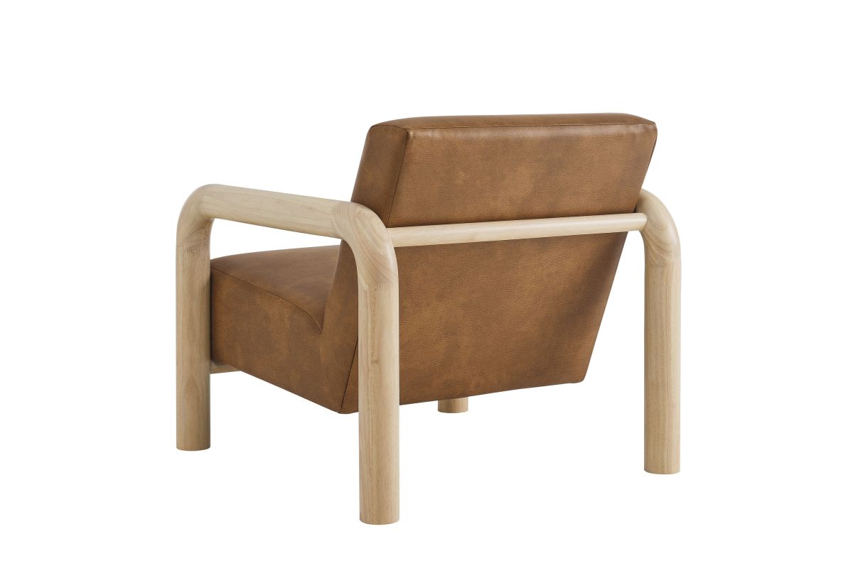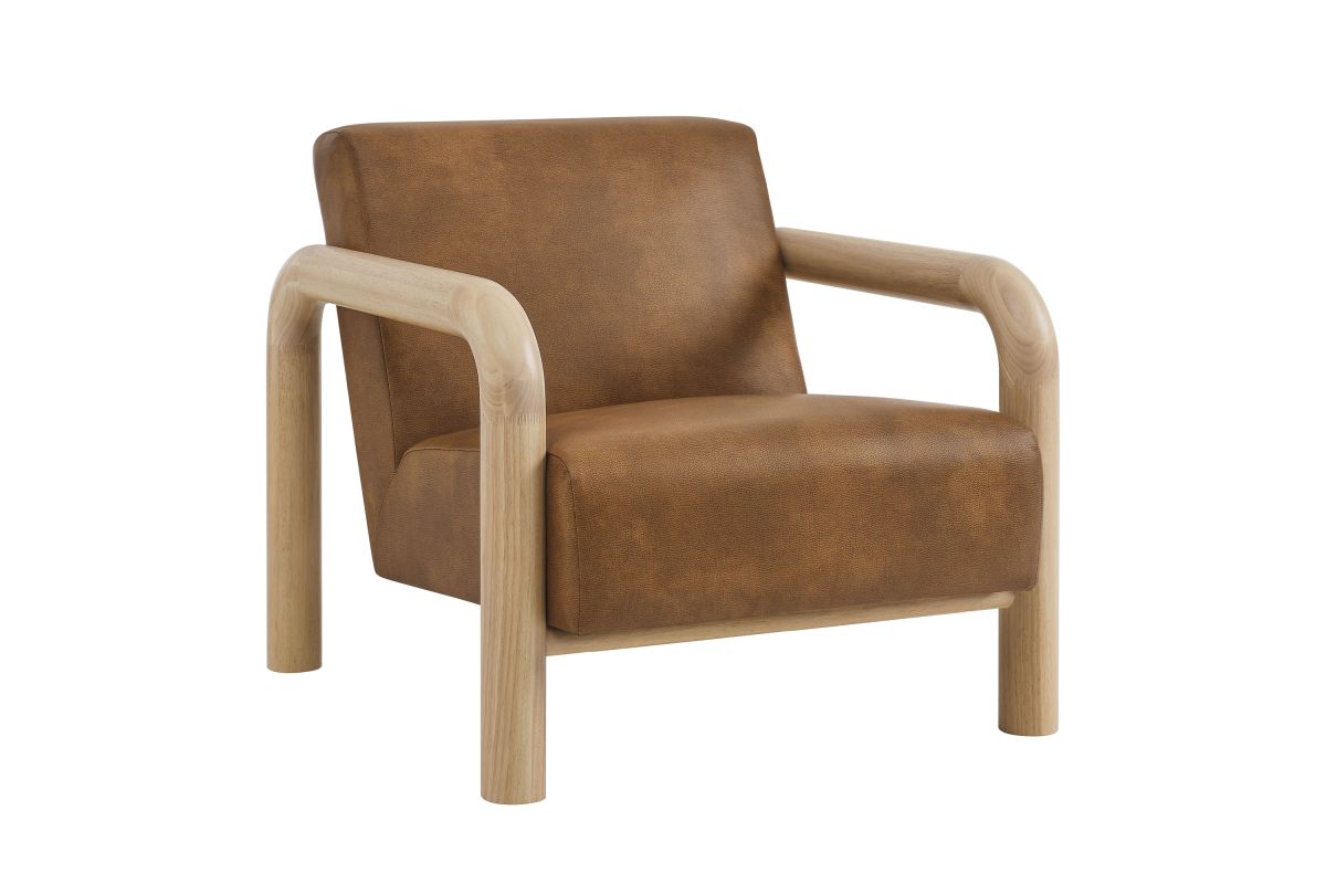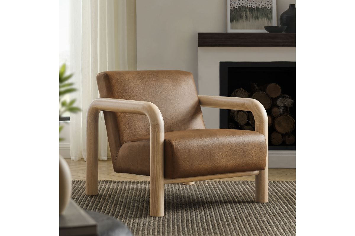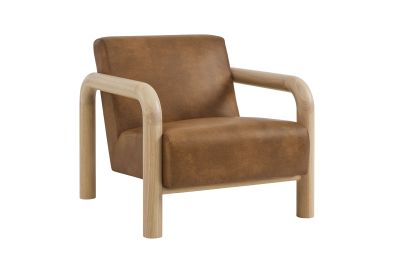 The Sereno Accent Chair brings sculptural elegance and elevated texture to any modern space. Wrapped in premium vegan leather with a rich pebbled texture, this lounge chair offers the look and feel of genuine leather. Its standout feature is the pair of oversized, rounded armrests crafted from solid rubberwood—bold in silhouette, smooth to the touch, and rich in natural character. With a generously padded seat and supportive backrest filled with dense foam, Sereno offers plush comfort in a compact footprint. Perfect for reading corners, bedroom nooks, or cozy lounge setups, this faux leather accent chair combines modern style with everyday comfort. Non-marking foot glides protect floors, and this living room side chair arrives fully assembled. Weight Capacity: 300 lbs.
