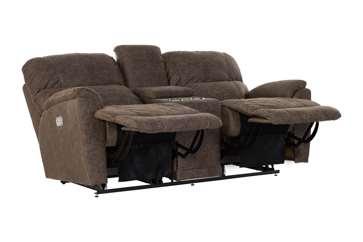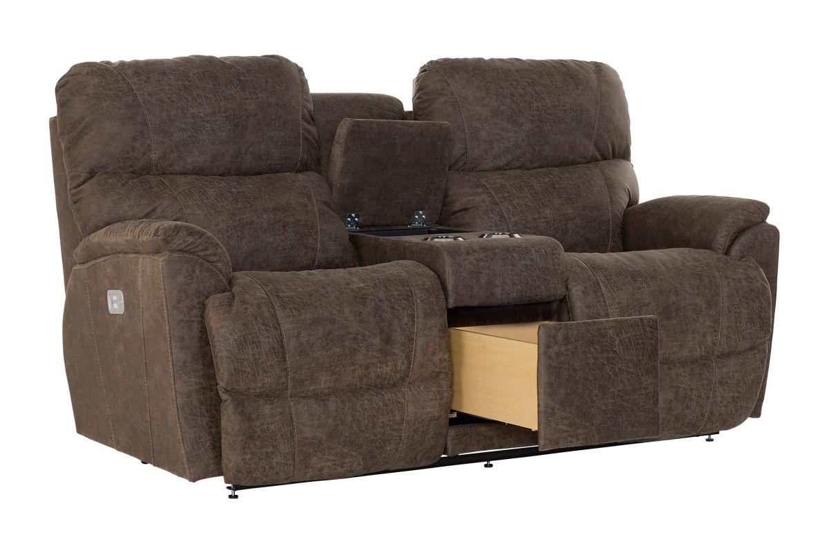 Crafted with premium-grade fabrics and leathers rigorously tested to resist wear and fading, the Trouper Dual Power Reclining Console Loveseat ensures long-lasting style and durability.