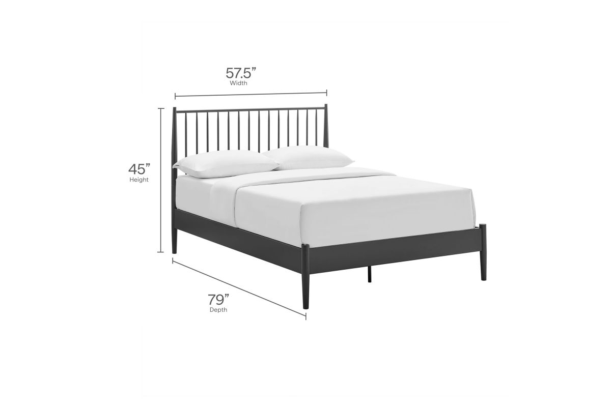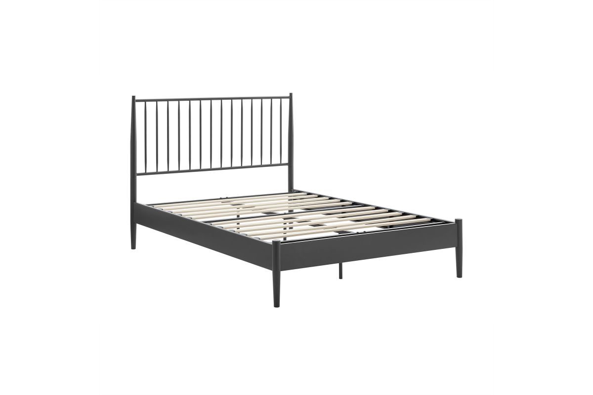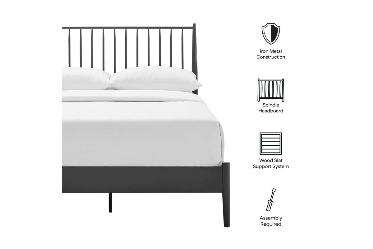 Blending classic charm with modern edge, the Adair Full Platform Bed makes a bold yet versatile statement in any bedroom. Crafted from durable iron, this full size bed frame features a tall spindle headboard that nods to classic farmhouse and mid-century modern aesthetics alike. The clean lines and vertical rods create a striking focal point, while the low-profile platform bed frame adds a grounding presence that complements both minimalist and traditional interiors. A series of sturdy wood slats provides reliable support for your mattress—no box spring required—while center support legs add enhanced stability. From urban lofts to cozy cottages, this metal spindle bed delivers enduring style, strong construction, and everyday comfort. Weight Capacity: 400 lbs.