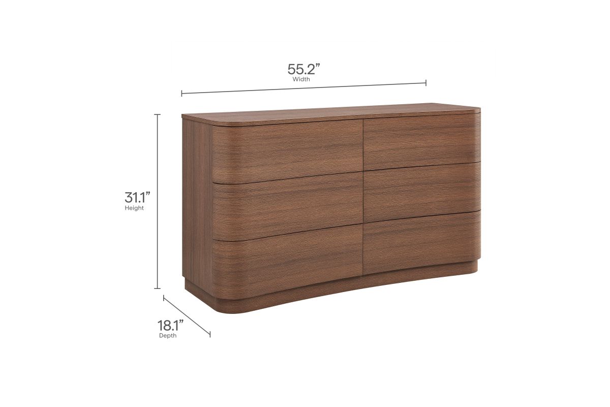 Sorry, the Mirae 6-Drawer Curved Dresser by Modway is no longer available. We've left this page up for reference only. Check out the great alternatives on this page or call 248-481-2208 or Chat with a Gardner White Sales Specialist about similar products.