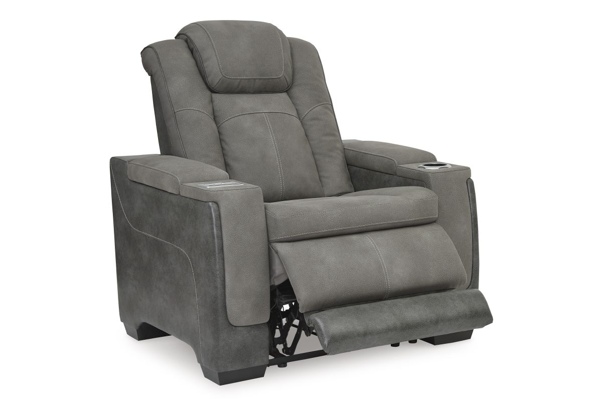 This sleek, ultra-modern power recliner has it all. With designer style and head-to-toe comfort, it has the upscale look of leather at a scaled-down faux leather price. Its gray two-tone upholstery is more durable and water-repellent than regular leather, an added bonus for families. Features including wireless and USB charging, an adjustable headrest and an extended ottoman make this the next generation of power recliners.