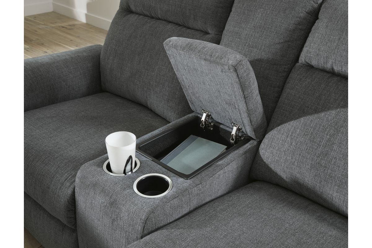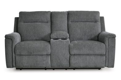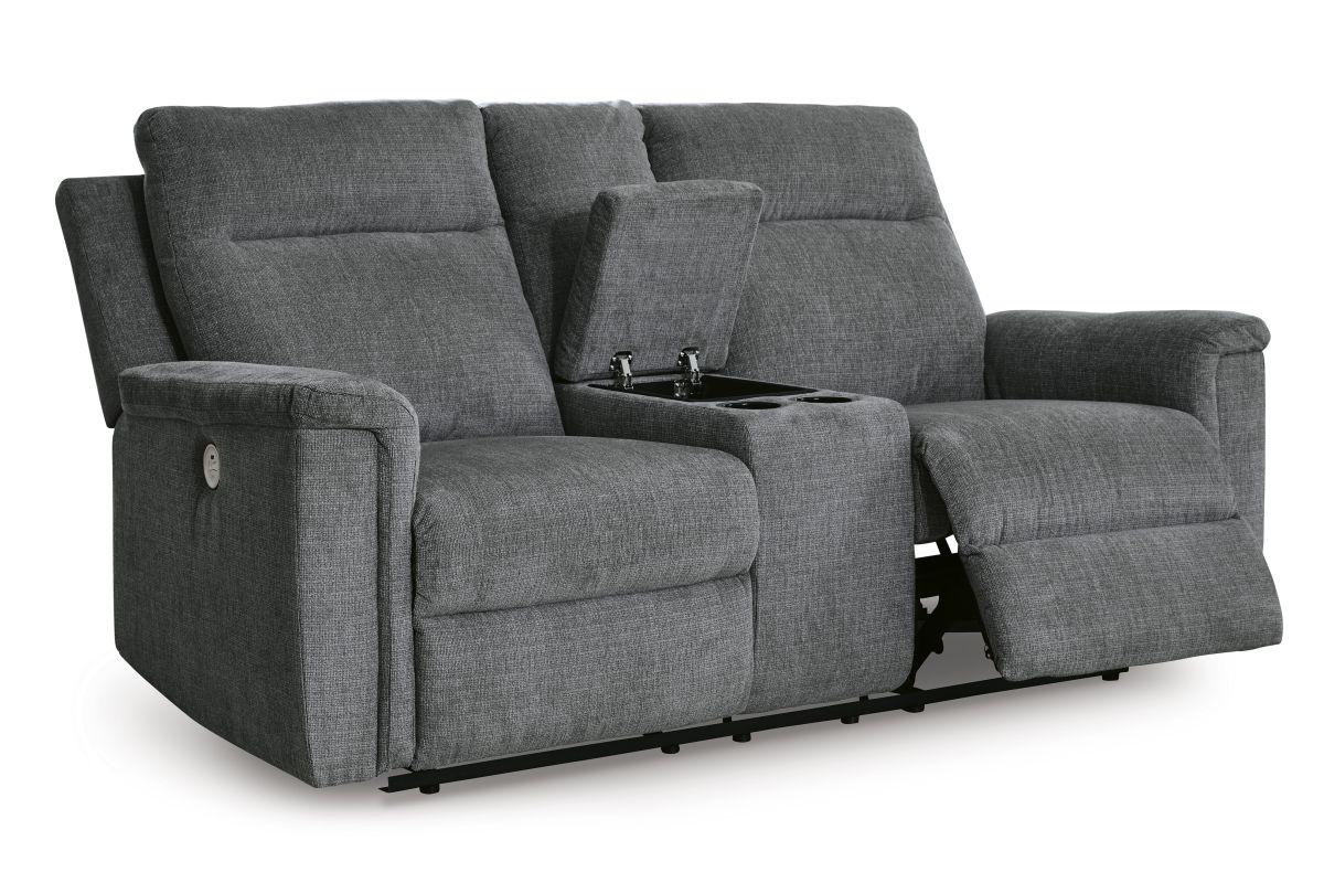 The ability to go from fully upright to relaxed and stretched out, all at the touch of a button, awaits. A beautiful blend of plush upholstery and casual style, this power reclining loveseat with console invites you to sink into ultimate comfort. Easily tuck away remotes or gaming controllers and keep drinks close by with its handy console. Whether you're hosting guests or lounging alone, you’ll find it hard to leave your living room—that’s a given.