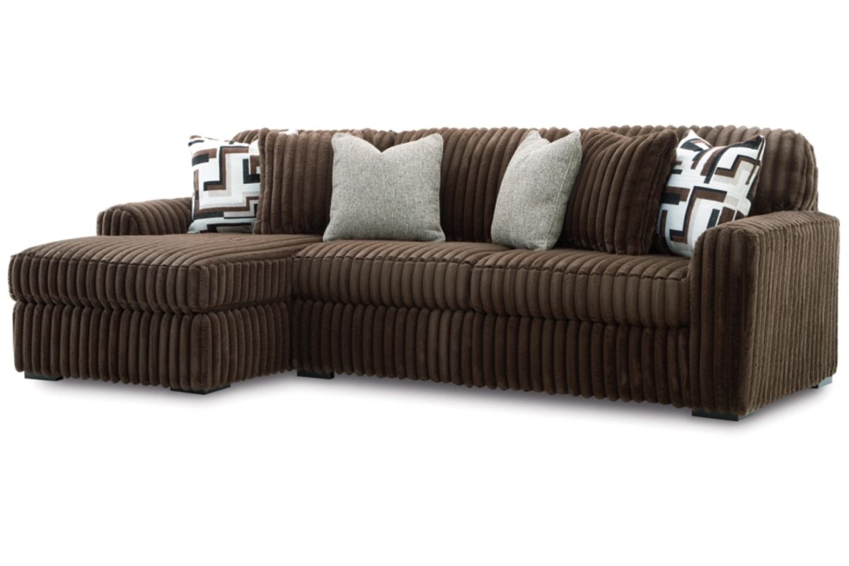 - Includes 2 pieces: left-arm facing corner chaise and right-arm facing sofa