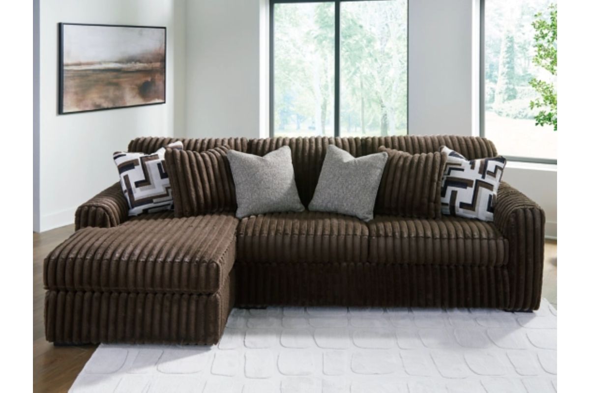 Wrapped in luxuriously soft jumbo corduroy, this sectional sofa with chaise takes cozy and inviting to a higher level. The sumptuous piece is perfect for unwinding after a long day, with exceptionally textured cushions that deliver pure indulgence. Now all you have to do is kick back, sink in and relax.