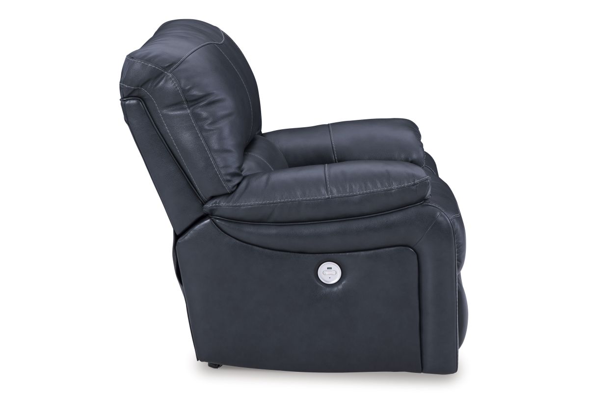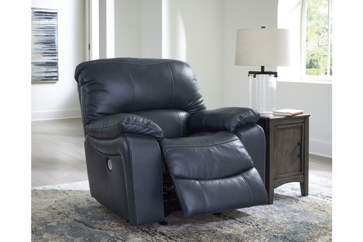Focus on function. This practical power rocker recliner balances contemporary character and irresistible comfort. Its affordable, expertly matched leather and faux leather upholstery keeps your style up to speed without breaking the bank. Reclining with the touch of a button, this piece plays well in relaxed, luxe seating areas made for quality time.