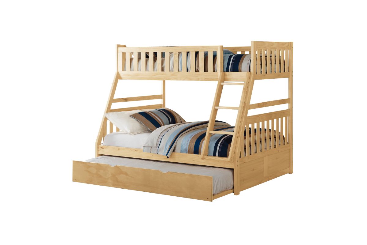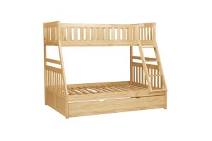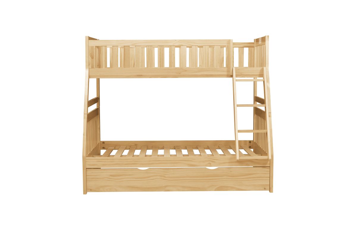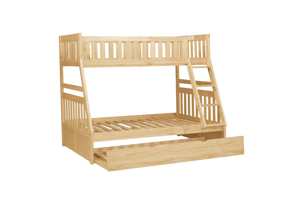 Maximizing sleep space is achieved with the stylish Bartly Collection. This transitional twin over full bunk bed with pull-out trundle provides extra room for sleepovers, all in a rich natural pine finish that complements any classic bedroom décor.