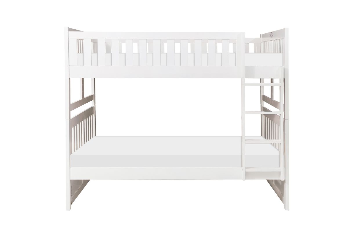 Maximizing sleep space is achieved with the stylish Galen Collection. This transitional full over full bunk bed in a white finish provides generous sleeping accommodations while maintaining a timeless and refined appearance.