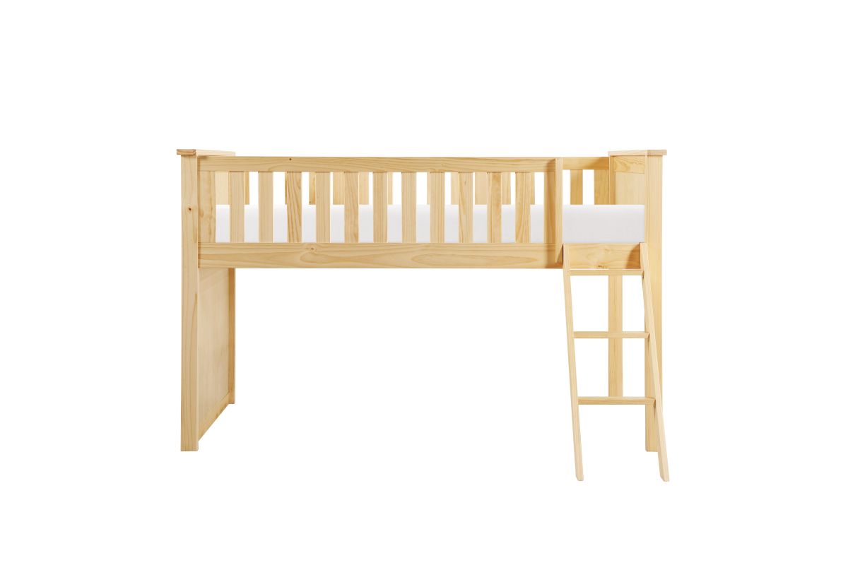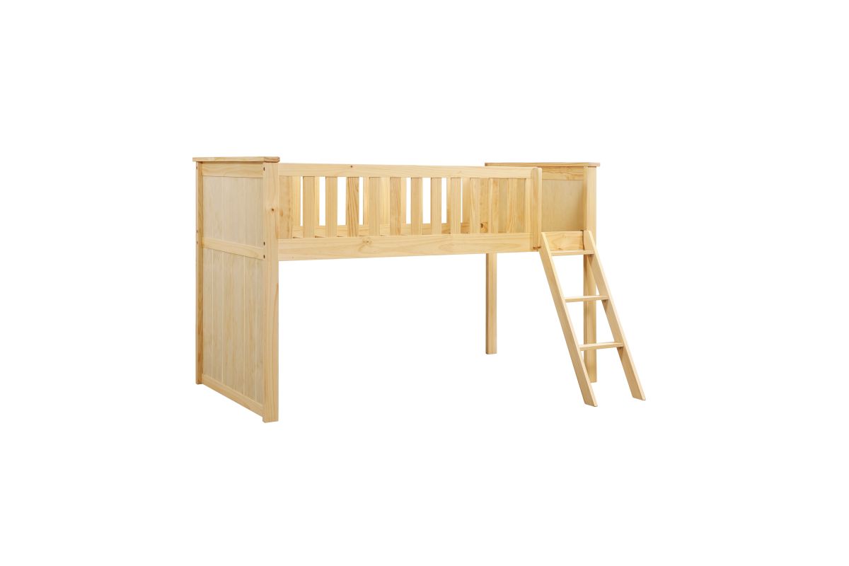 Maximizing sleep space is achieved with the stylish Bartly Collection. This transitional twin low-loft bunkbed is featured in a natural pine finish making it an appropriate choice for a number of youth bedroom settings. An angled ladder provides easy access to the loft platform.