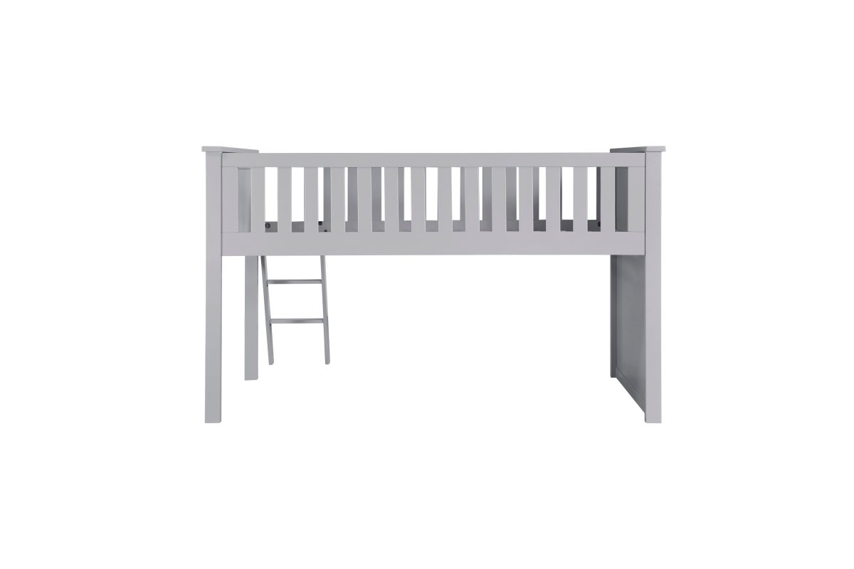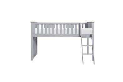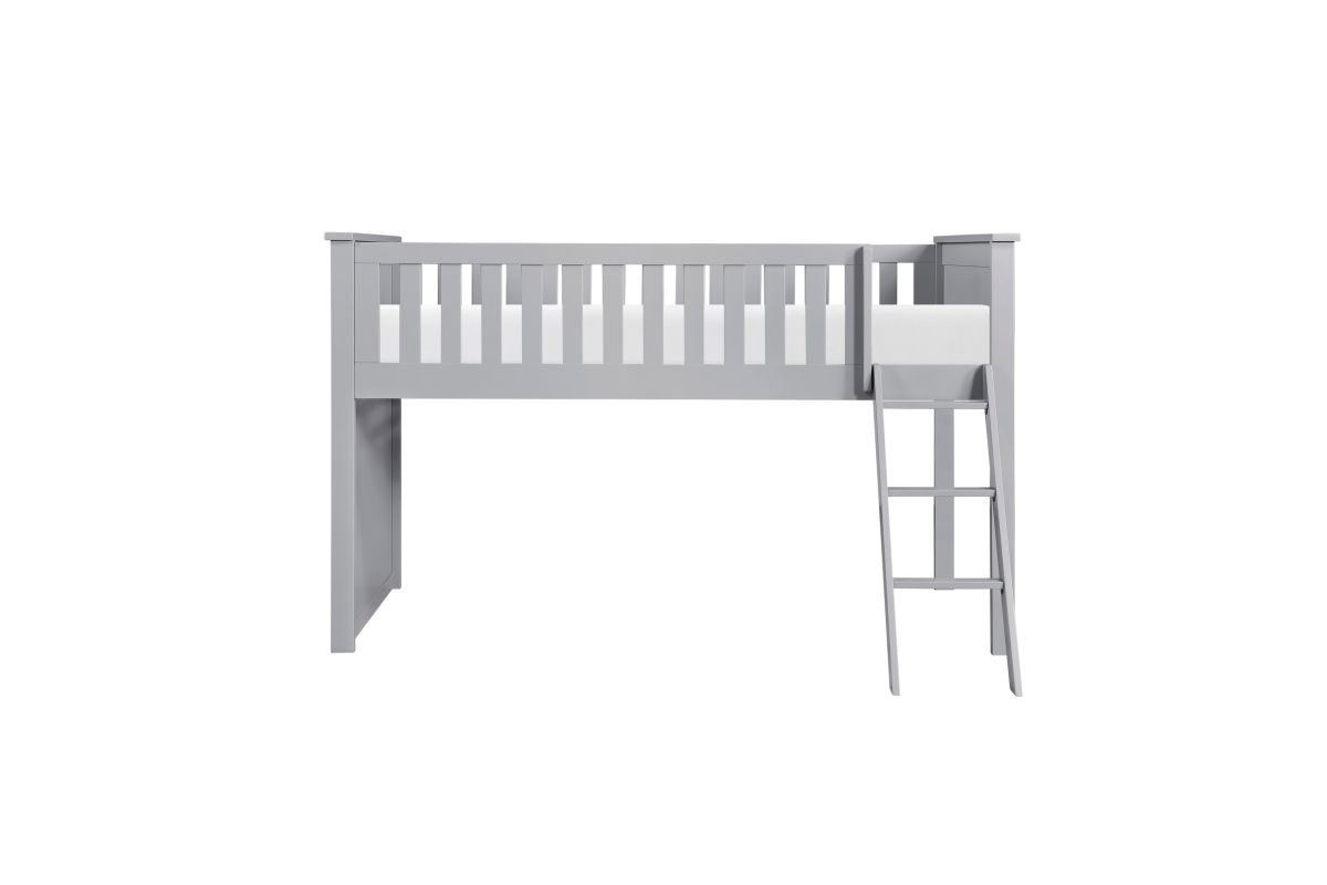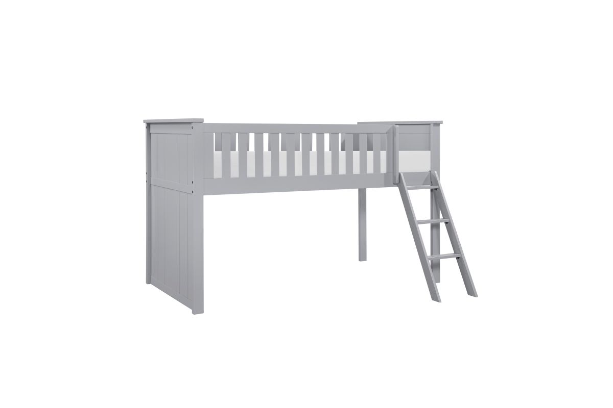 Maximizing sleep space is achieved with the stylish Orion Collection. This transitional twin low-loft bunkbed is featured in a gray finish making it an appropriate choice for a number of youth bedroom settings. An angled ladder provides easy access to the loft platform.