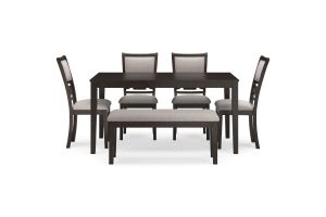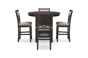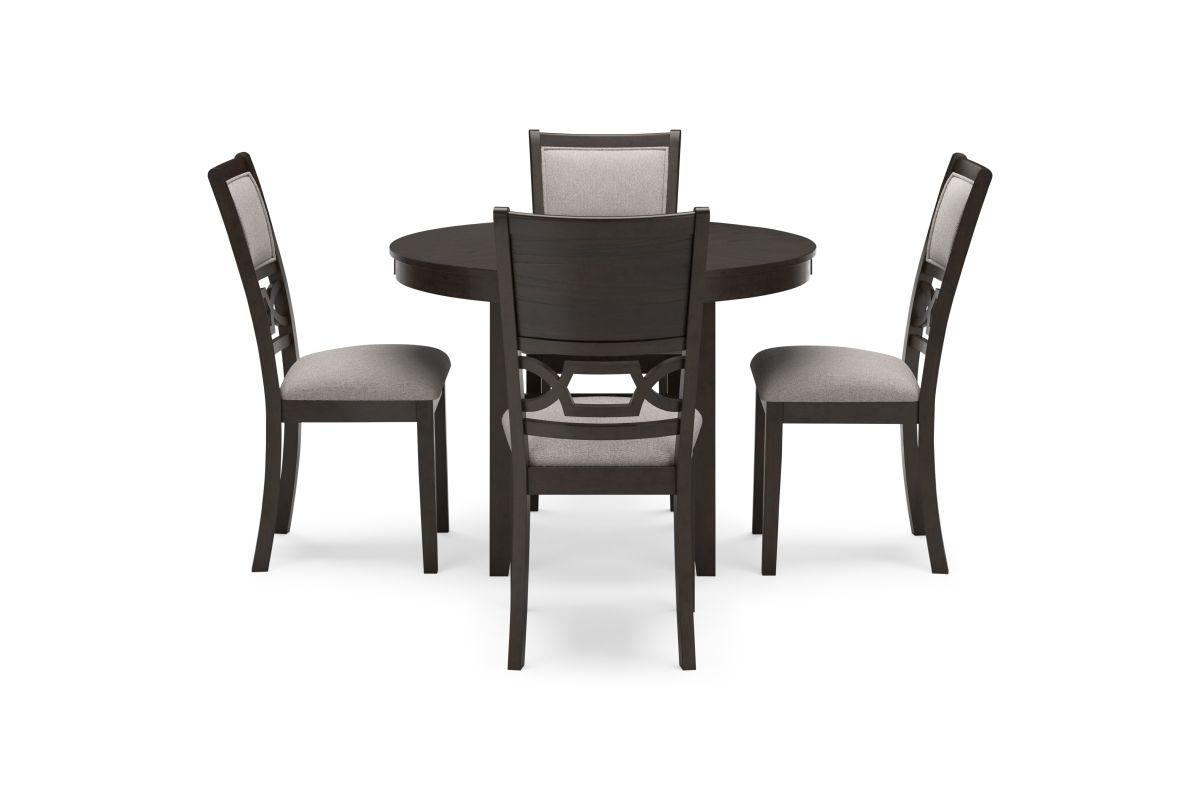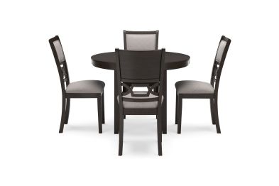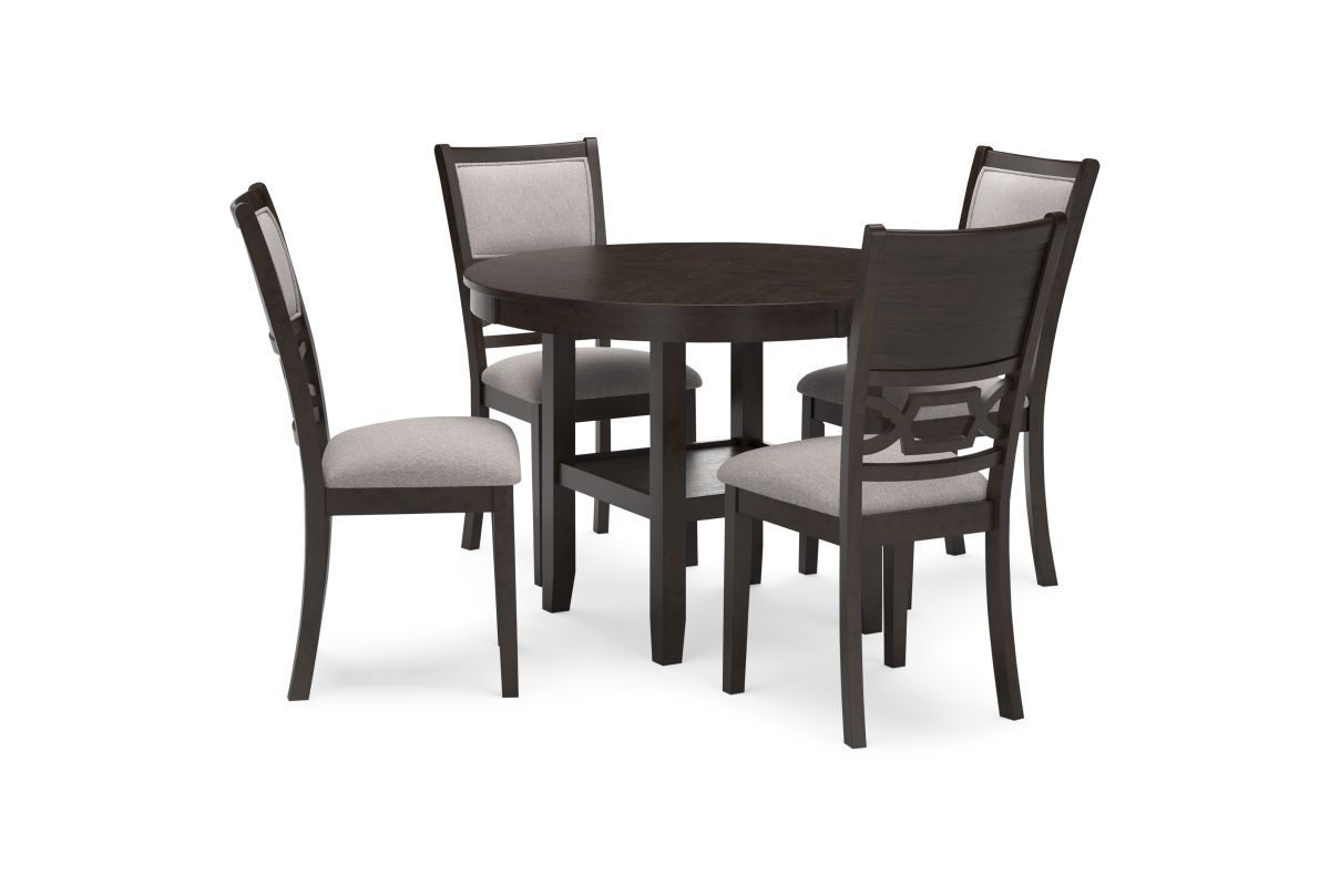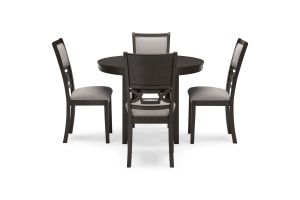 - Includes dining table and 4 upholstered chairs