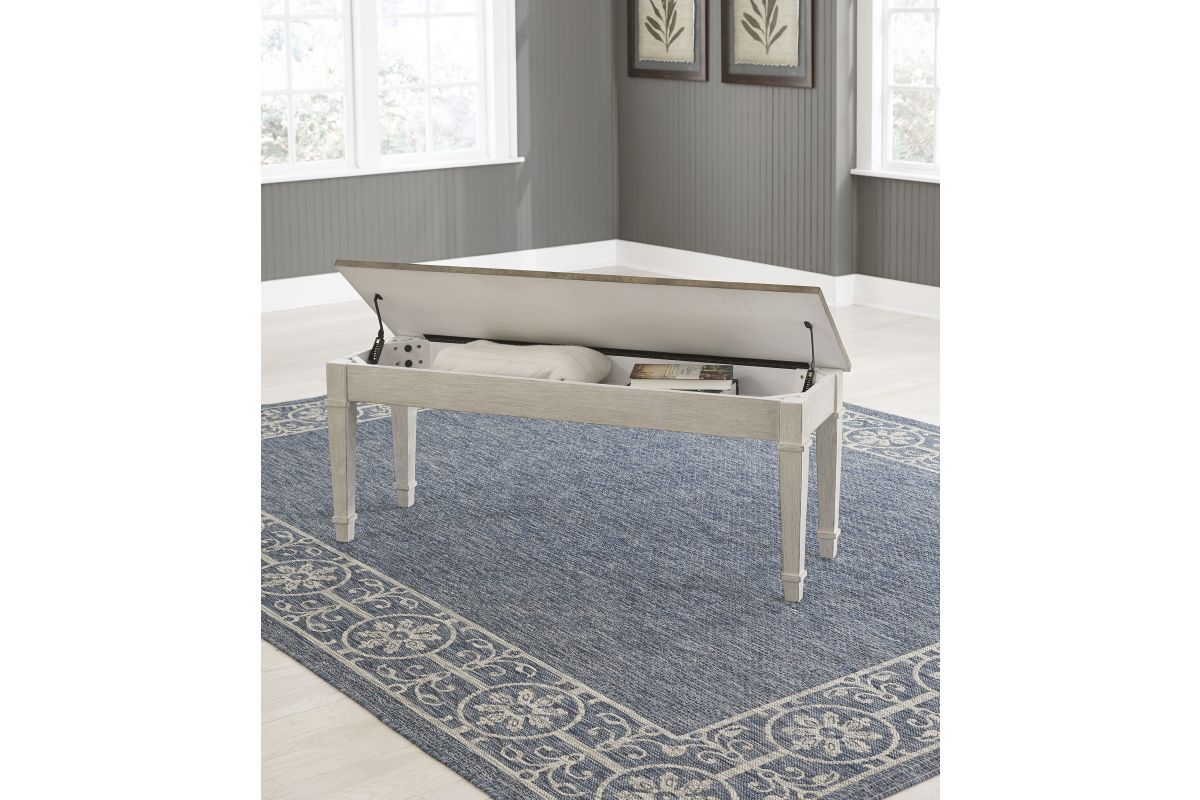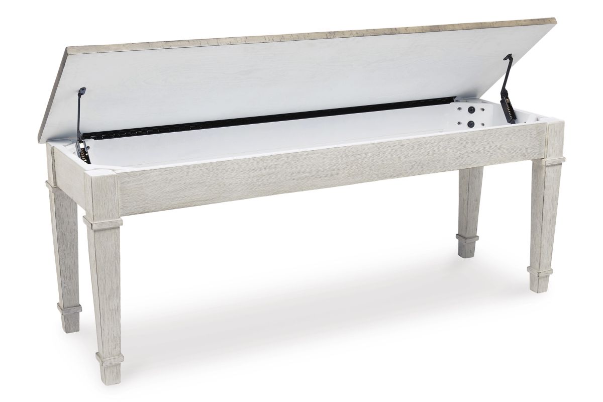This bench invites you to strike a note for small space living. An inspired choice for coastal chic or modern farmhouse settings, this piano style bench with under seat storage sports a grayish white finish with rub through effect for timeworn appeal.