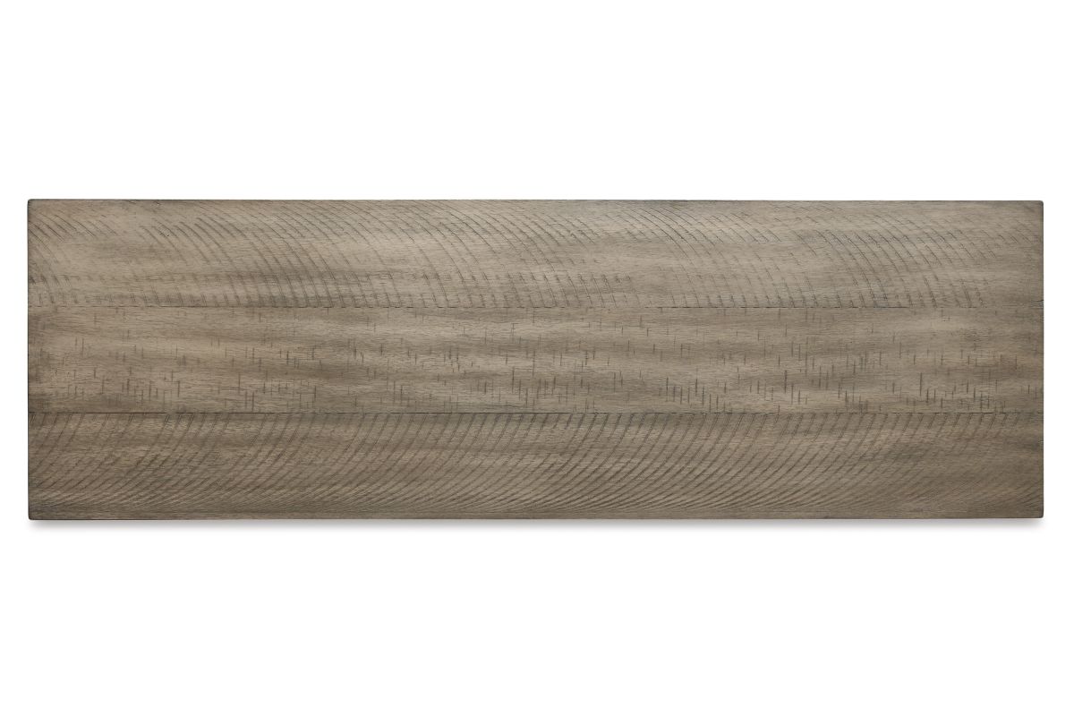- Distressed grayish white finish