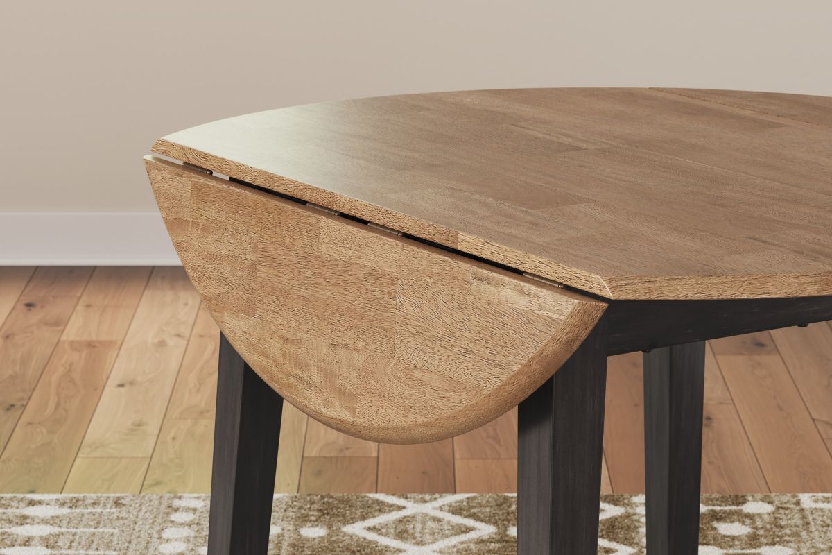 Complement your home’s simply relaxed sensibility with this drop-leaf dining table. A handsome dark brown hue offers a chic contrast to the natural wood tone, for a neutral look that vibes with a variety of aesthetics. When guests drop by, convert it from a space-saving two-seater to a larger table with the two drop leaves. Whether you're sipping your morning coffee, settling in for dinner or working from home, this table is smartly designed for everyday comfort and style.