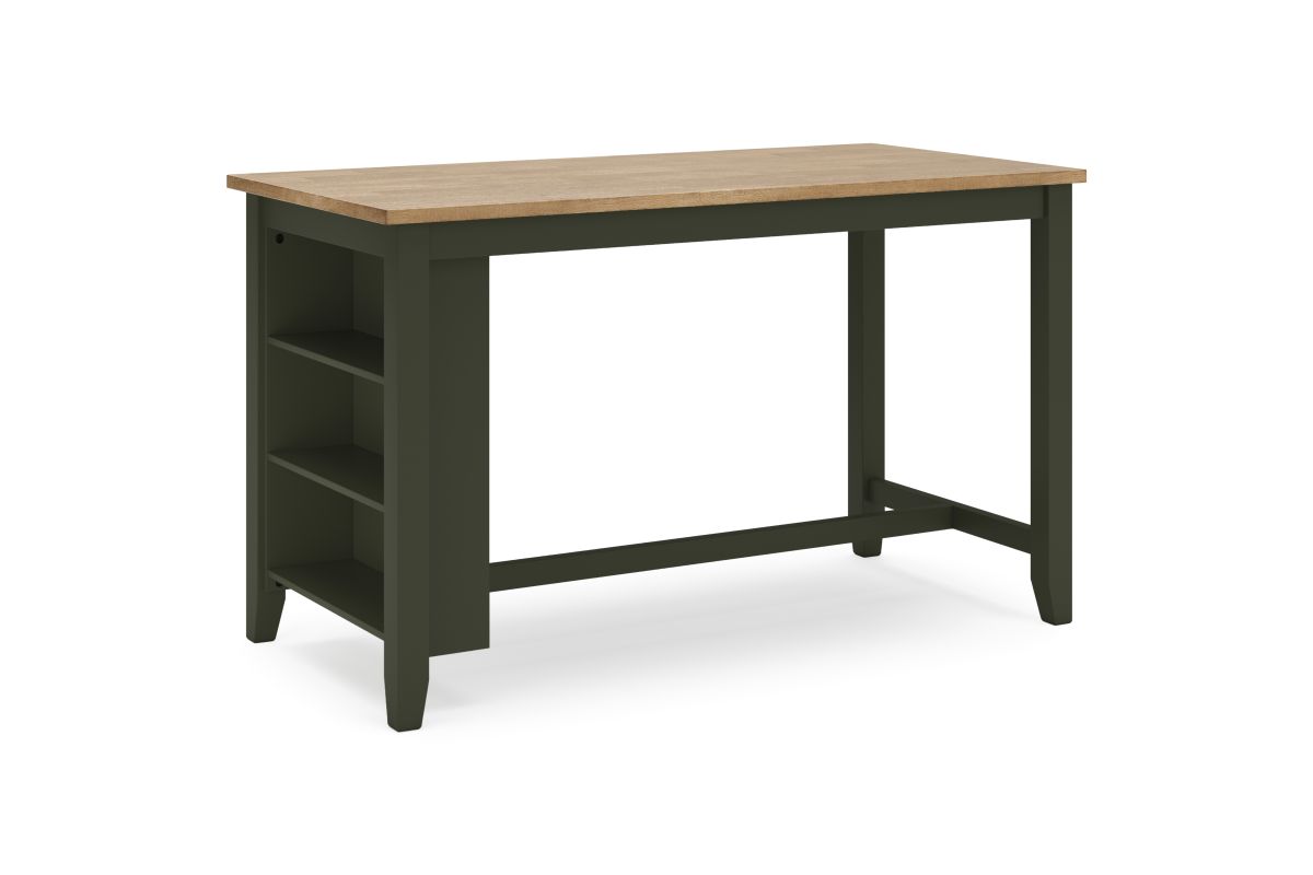 Complement your home’s simply relaxed sensibility with this counter height dining table. A dark blue hue offers a chic contrast to the natural wood tone, for a casual look that vibes with a variety of aesthetics. Built-in storage shelves keep kitchen and work accessories easily accessible. Whether you're sipping your morning coffee, settling in for dinner or working from home, this table is smartly designed for everyday comfort and style.