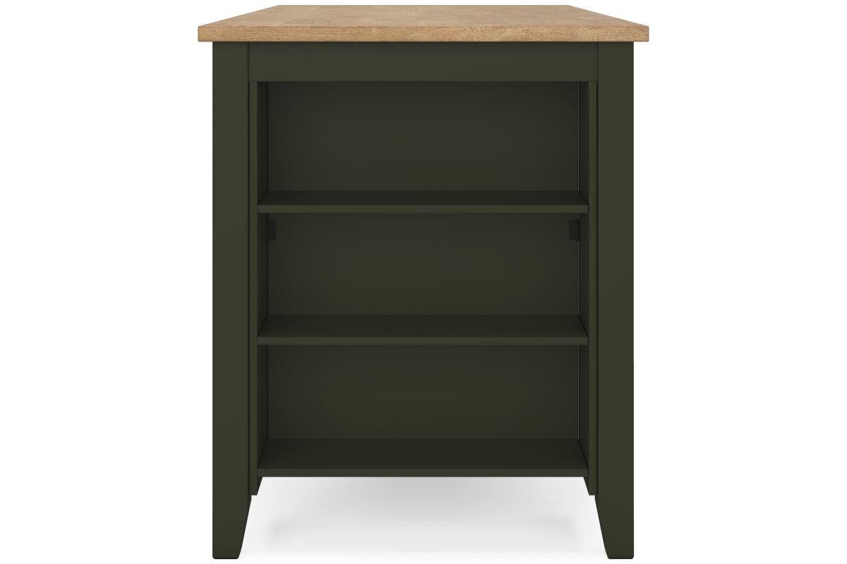 - Light natural mango wood finish with a casual green