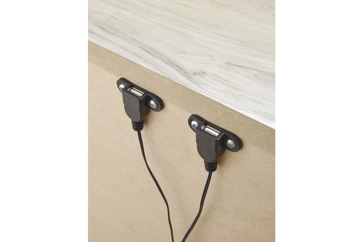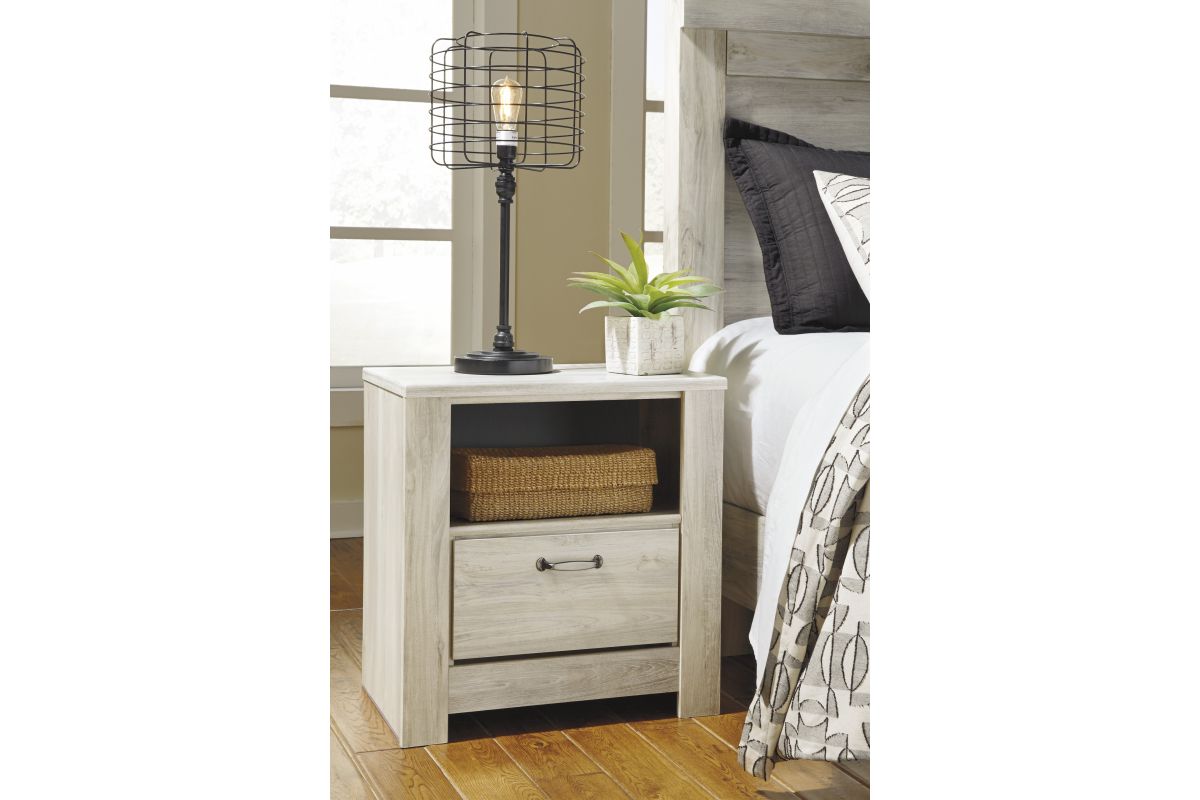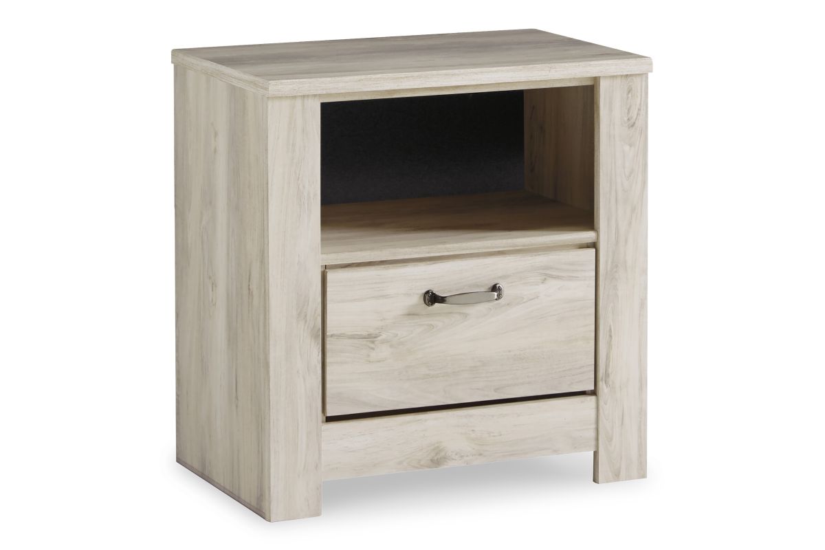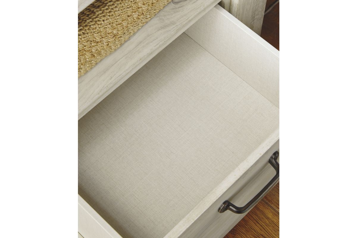 The Bellaby Bedroom Collection by Ashley Furniture offers a relaxed yet refined take on modern farmhouse style. Finished in a soft “wispy white” whitewash over a replicated oak grain, the collection captures the warmth and texture of natural wood while keeping a bright, airy look that fits both rustic and contemporary interiors. Clean lines and subtle detailing give it a versatile charm, while brushed nickel hardware with black edging adds a touch of modern contrast.
