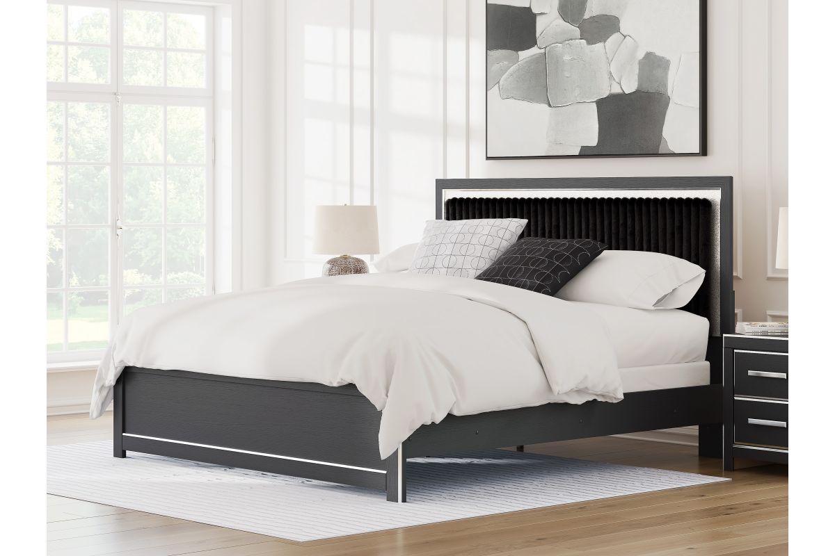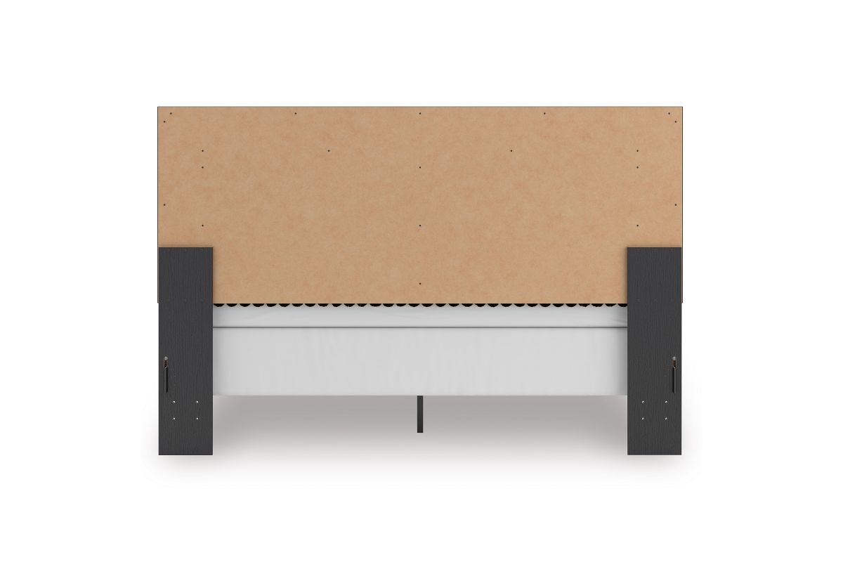 - Includes upholstered panel headboard, panel footboard and panel rails