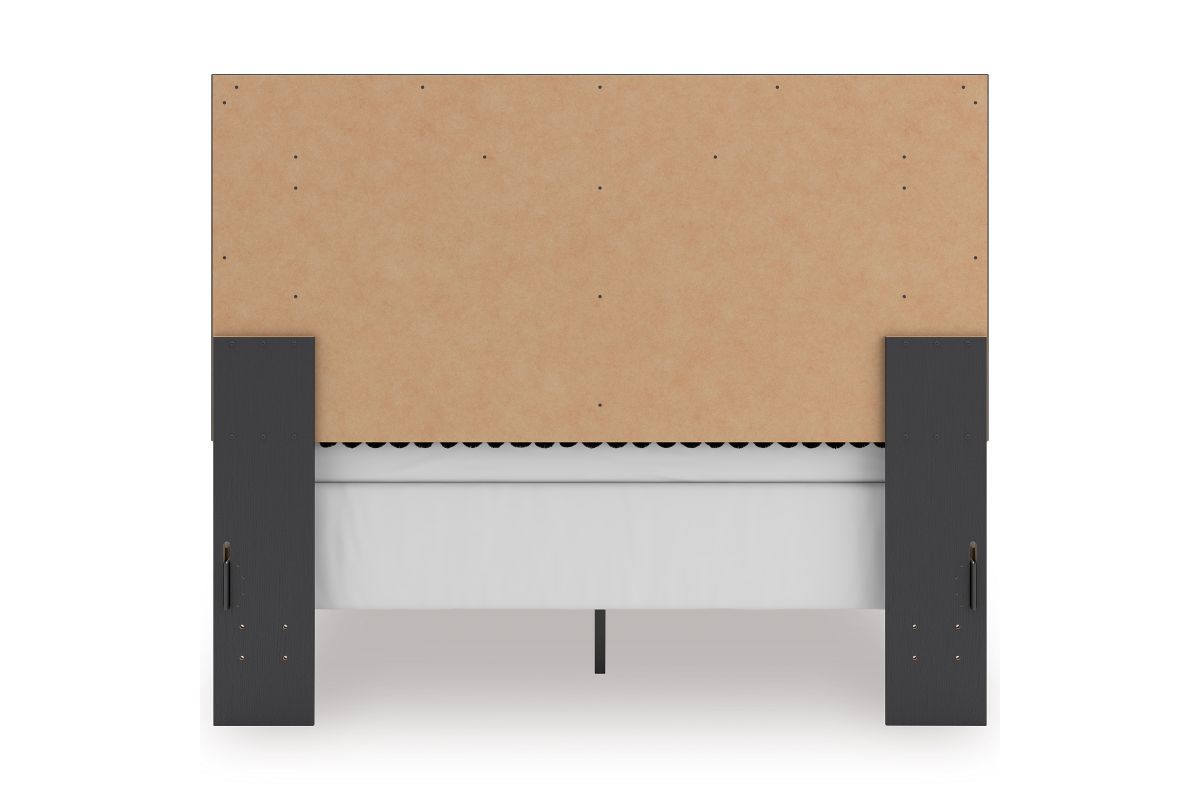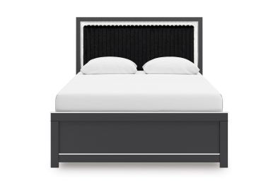 - Includes upholstered panel headboard, panel footboard and panel rails