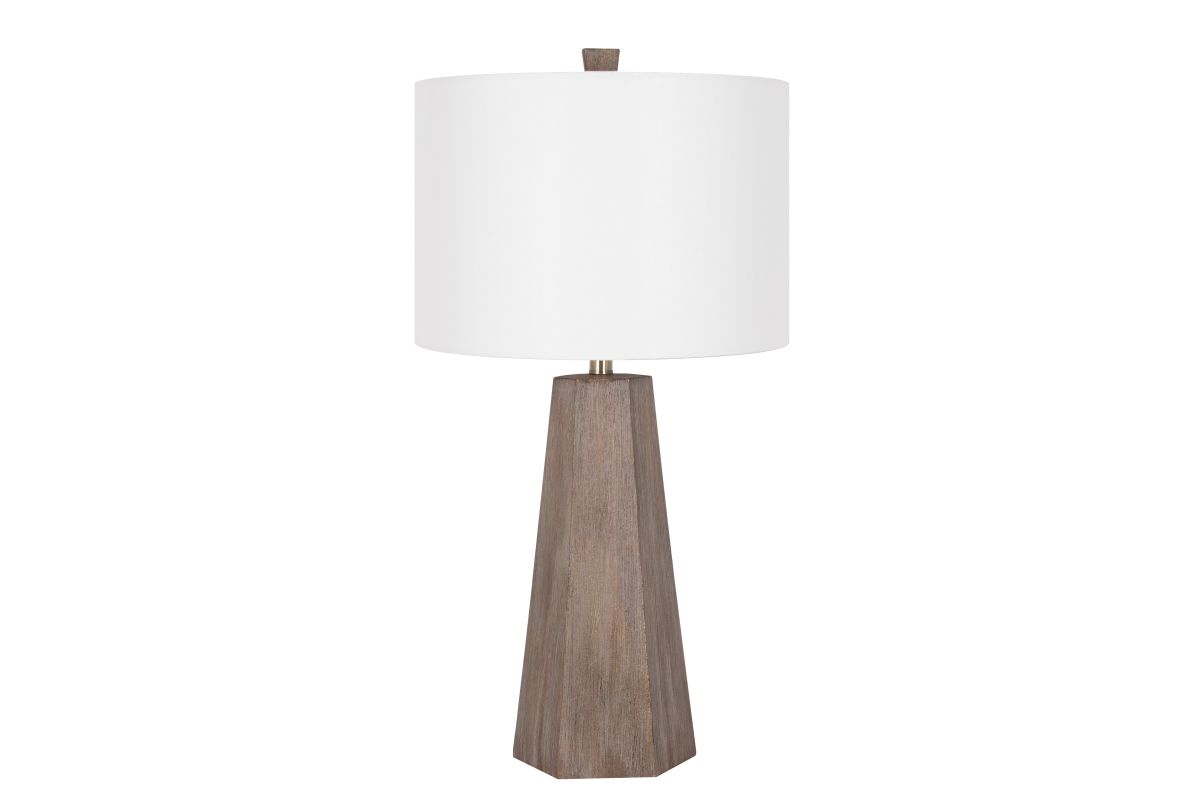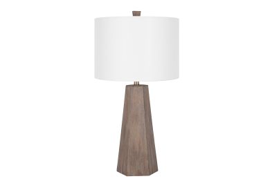 The 30" Dark Brown Table Lamp features a round off white linen shade.