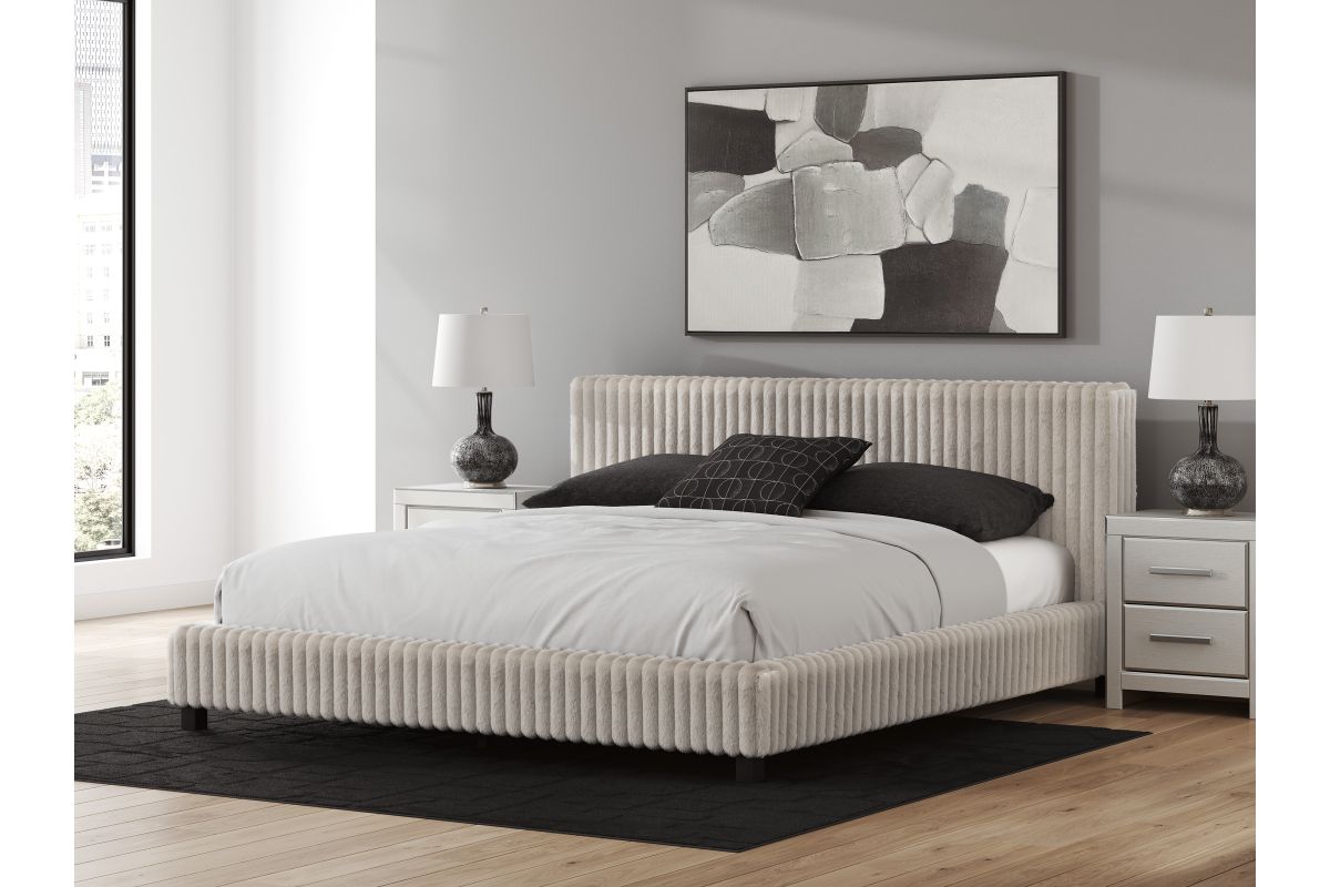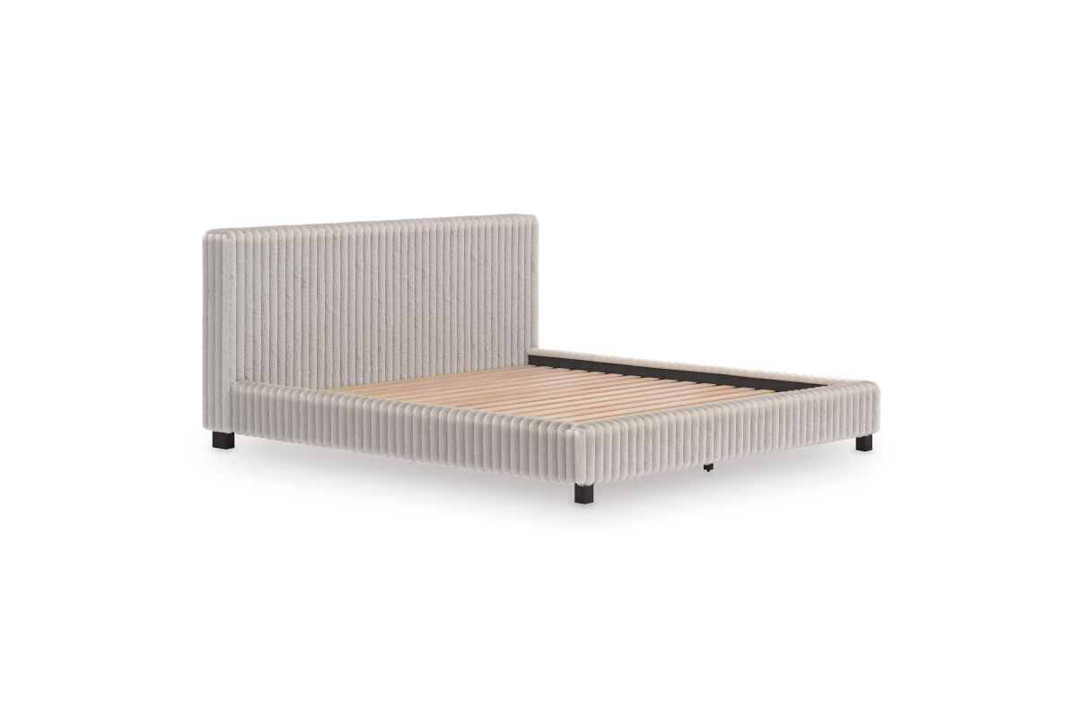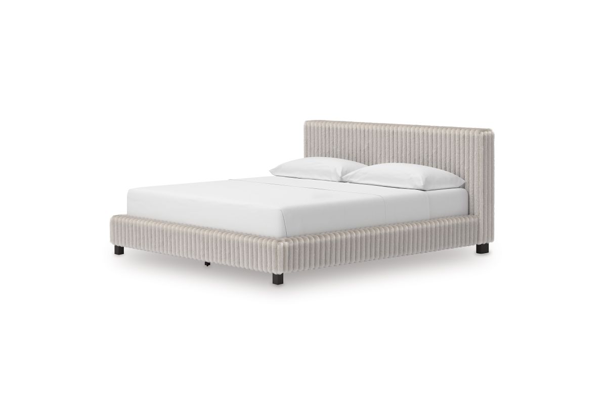 If casual and contemporary are your jam, you’re gonna love this California king upholstered bed. Covered from head to toe in a luxuriously soft gray corded fabric, it has a chic flair that's sure to wake up your inner sanctum’s style. We’re talkin’ relaxed refinement.